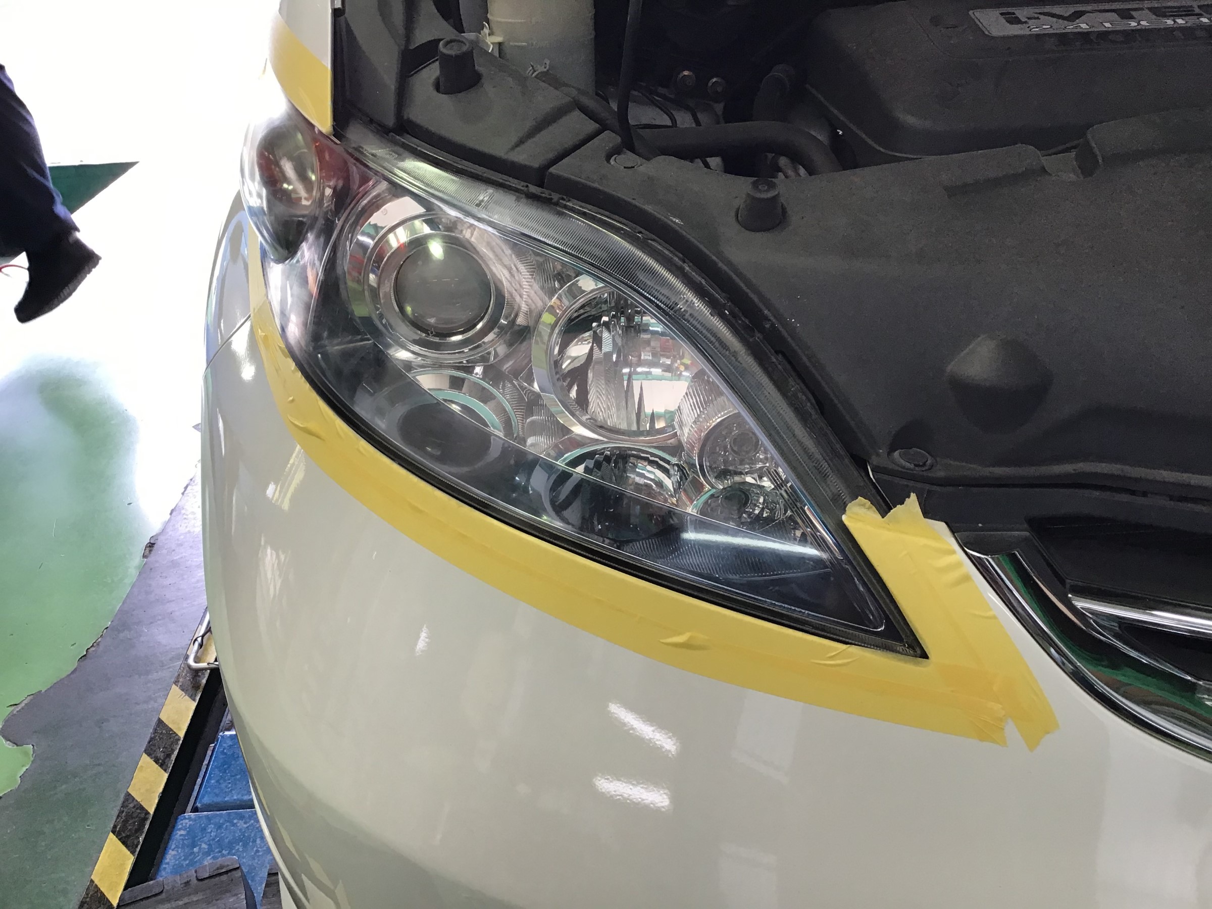 専用の磨き粉でしっかり磨いてコーティング剤をぬりぬり!!こんなヘッドライトが…