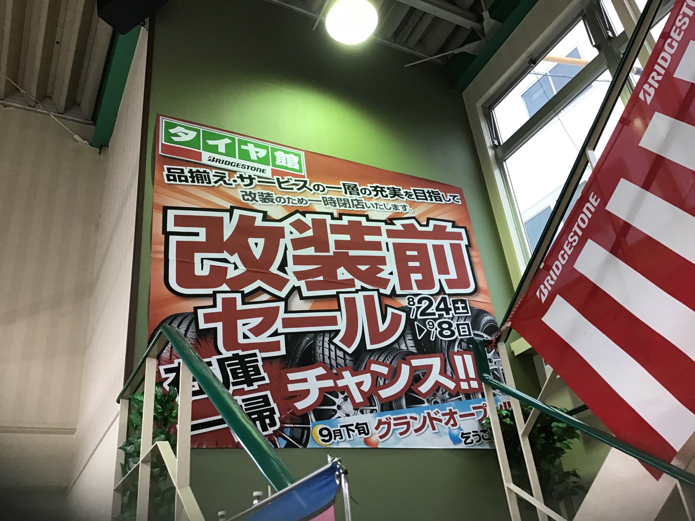 そしてあいにくの天候の中本日8日から開催しております改装前セールに多くご来店頂きありごとうございます!タイヤは勿論ですが、オイル交換、バッテリー交換でのご来店や無料安全点検でのご来店で大盛り上がりでございます(*^▽^*)「リニューアルしたらまた遊びに来るわ~」とのお声も頂き励みになっております(^^♪