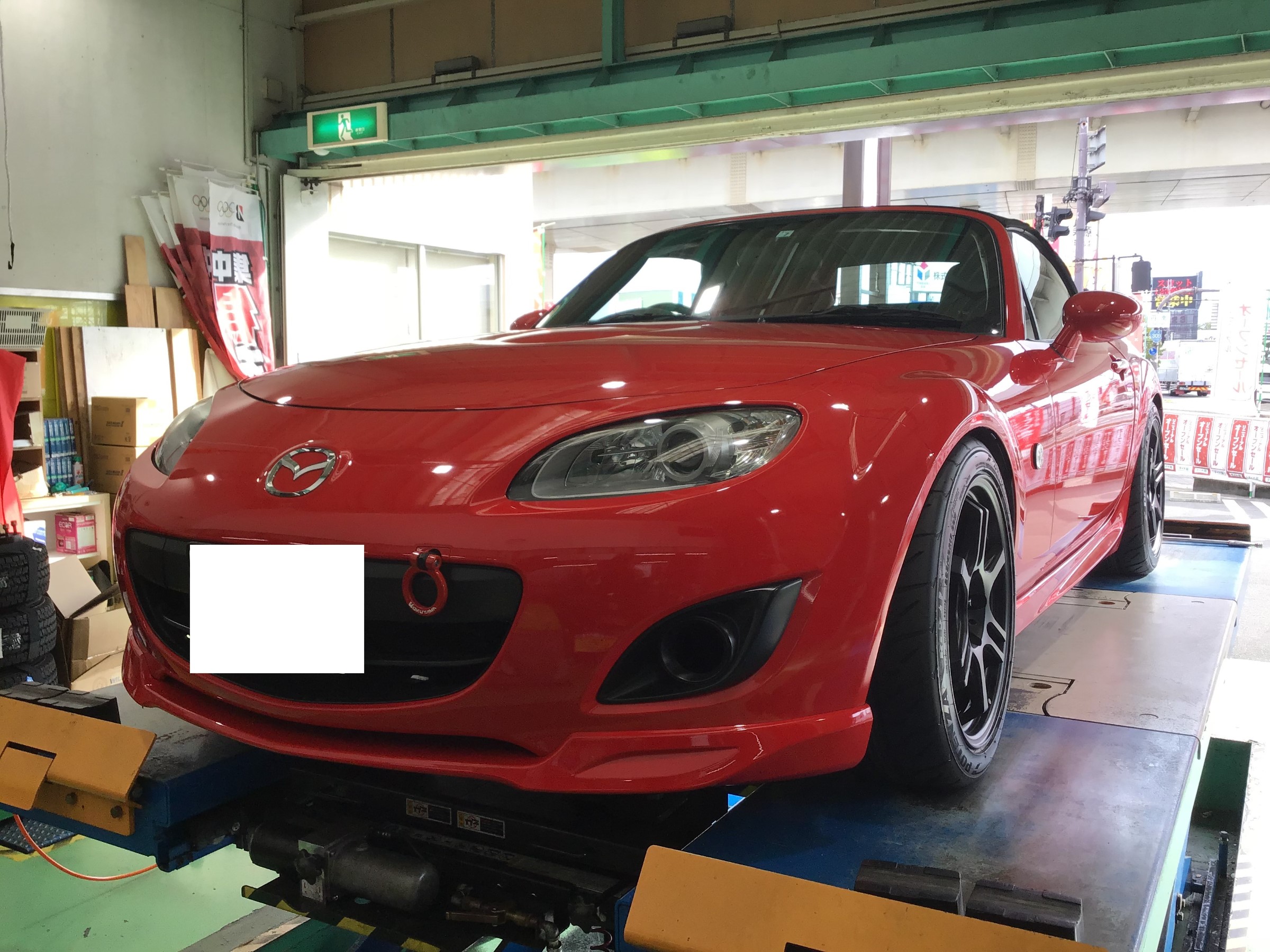 装着させて頂きましたのは赤のロードスター!!私個人的に赤×黒の組み合わせは抜群にカッコイイと思うんですね!!