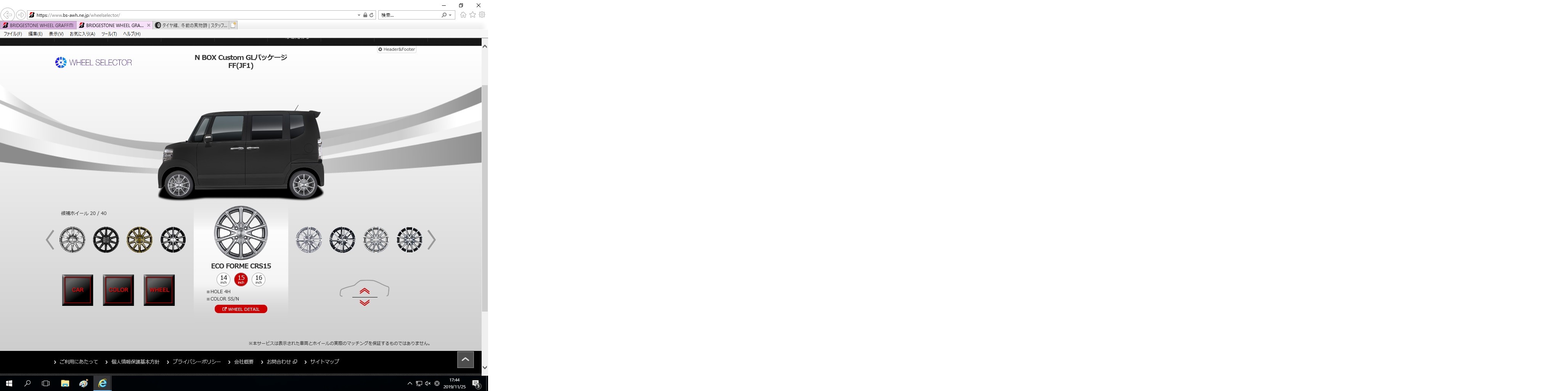 そこで!こちらをご利用ください!ブリヂストンのホームページにある’WHEEL SELECTOR'を!こちらでブリヂストンホイールの装着イメージがご覧頂けます!