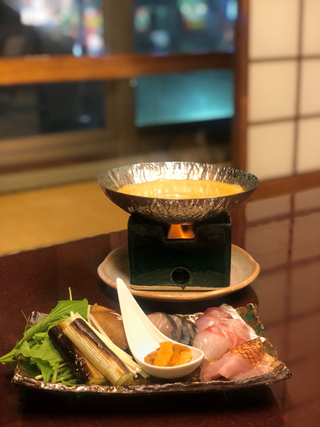 場所は宗右衛町、道頓堀を臨み佇むお店です。頂戴したのはうにしゃぶ!しゃぶしゃぶのダシにウニが溶け込んでいるというわけです!