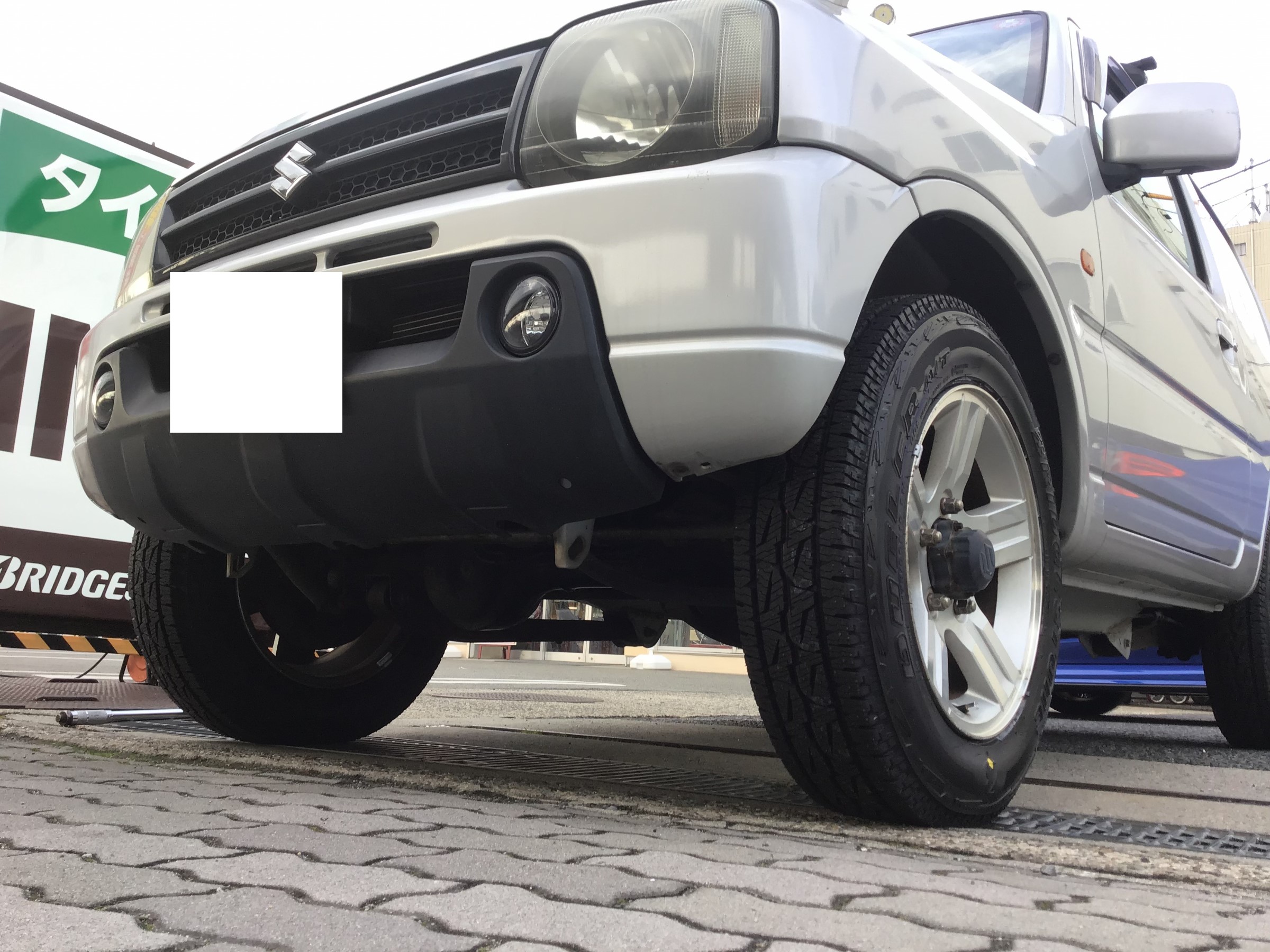 お取り付けしたのはジムニー!以前にもジムニーにより悪路に特化したデューラーM/T 674を装着させて頂きましたが、やはりそういった路面を走るにはうってつけの車という事でしょうね!パジェロミニ等もありますがこういった車はジムニーの一人勝ちの印象があります!