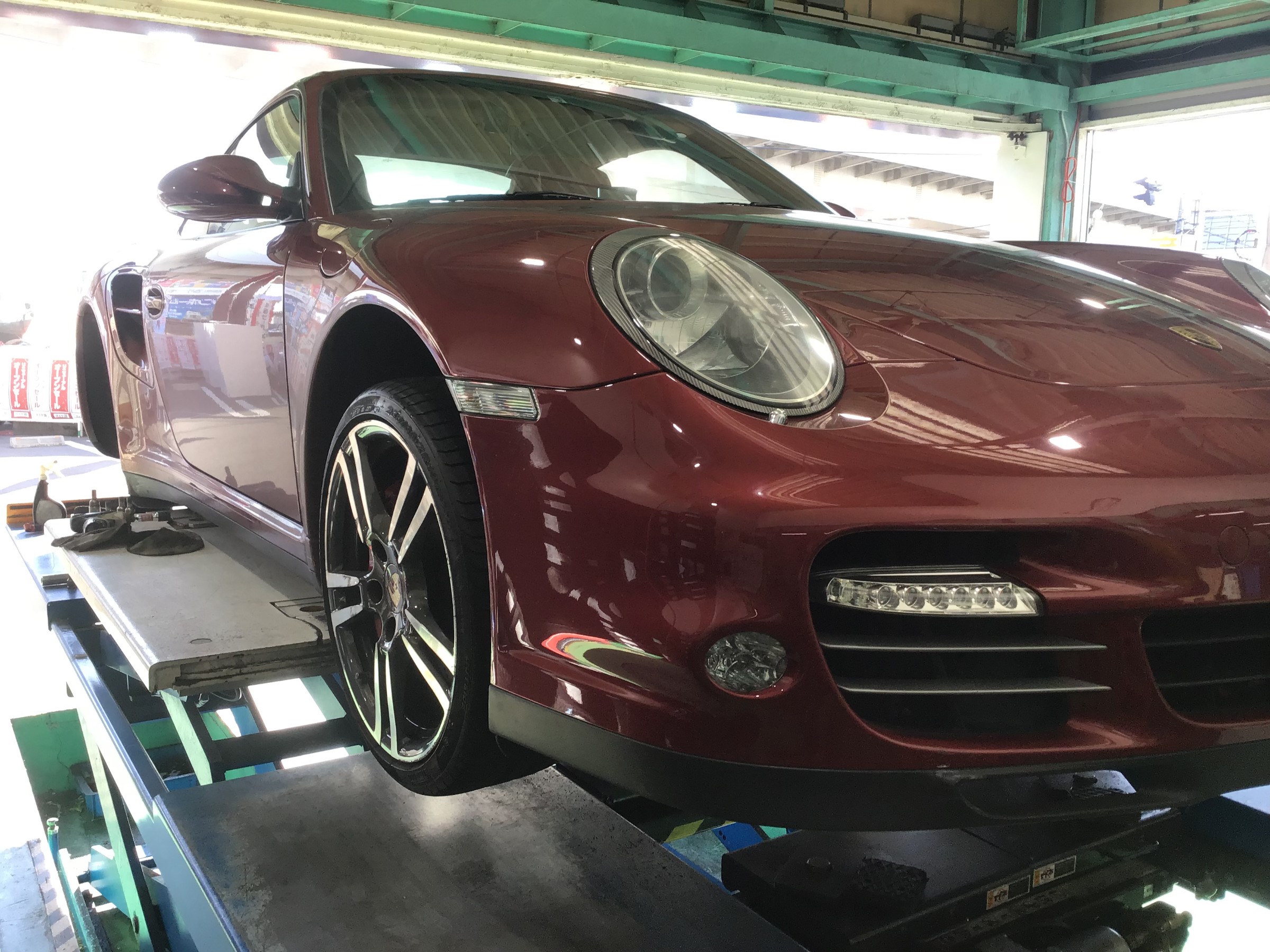 外国車もお任せください!ポルシェ 997 ターボをタイヤ交換!