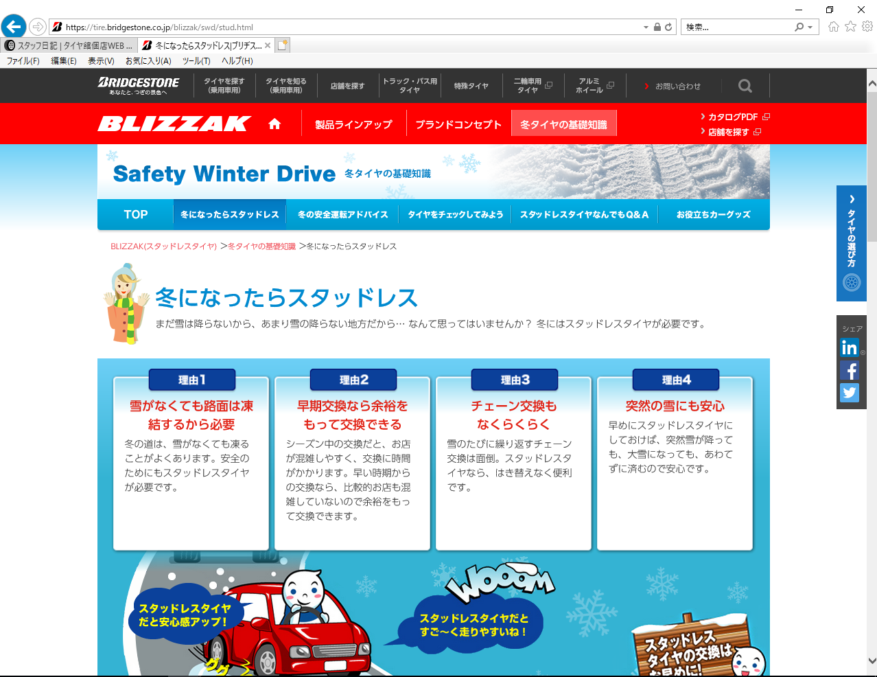 前置きが長くなりましたが、、、大阪は暖かいですが日本海付近や降雪、路面の凍結が考えられる地帯に行かれる方は是非冬用タイヤの装着を。チェーンに関してもご相談をお待ちしております。