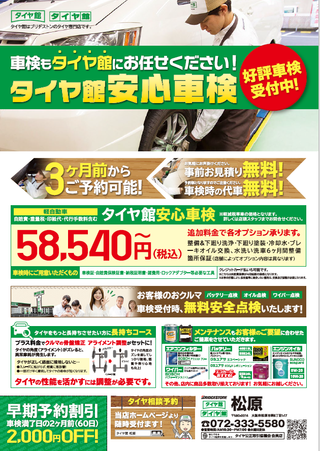 タイヤの履き替えと共に多くご用命頂くのが車検!この記事をご覧頂いている方で「タイヤ館って車検もやってるんや~。」と思われた方いらっしゃいませんか!?そうなんです!タイヤ館でも車検を承っております\(^o^)/