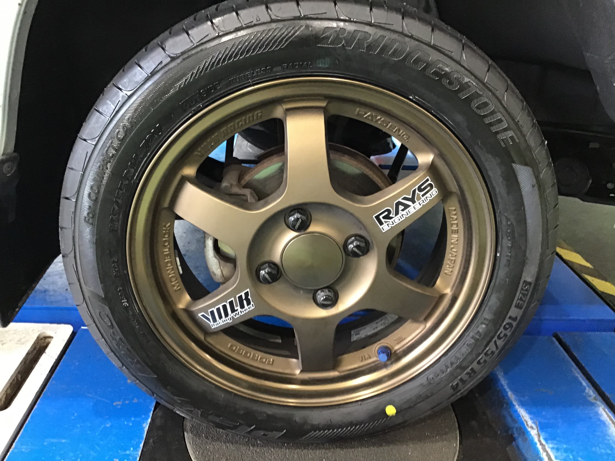 Playzの「疲れにくい」性能をより発揮させる為にアライメント調整でタイヤの取り付け角度を適正化!これでより運転が楽しくなる事間違いなしです(*'▽')