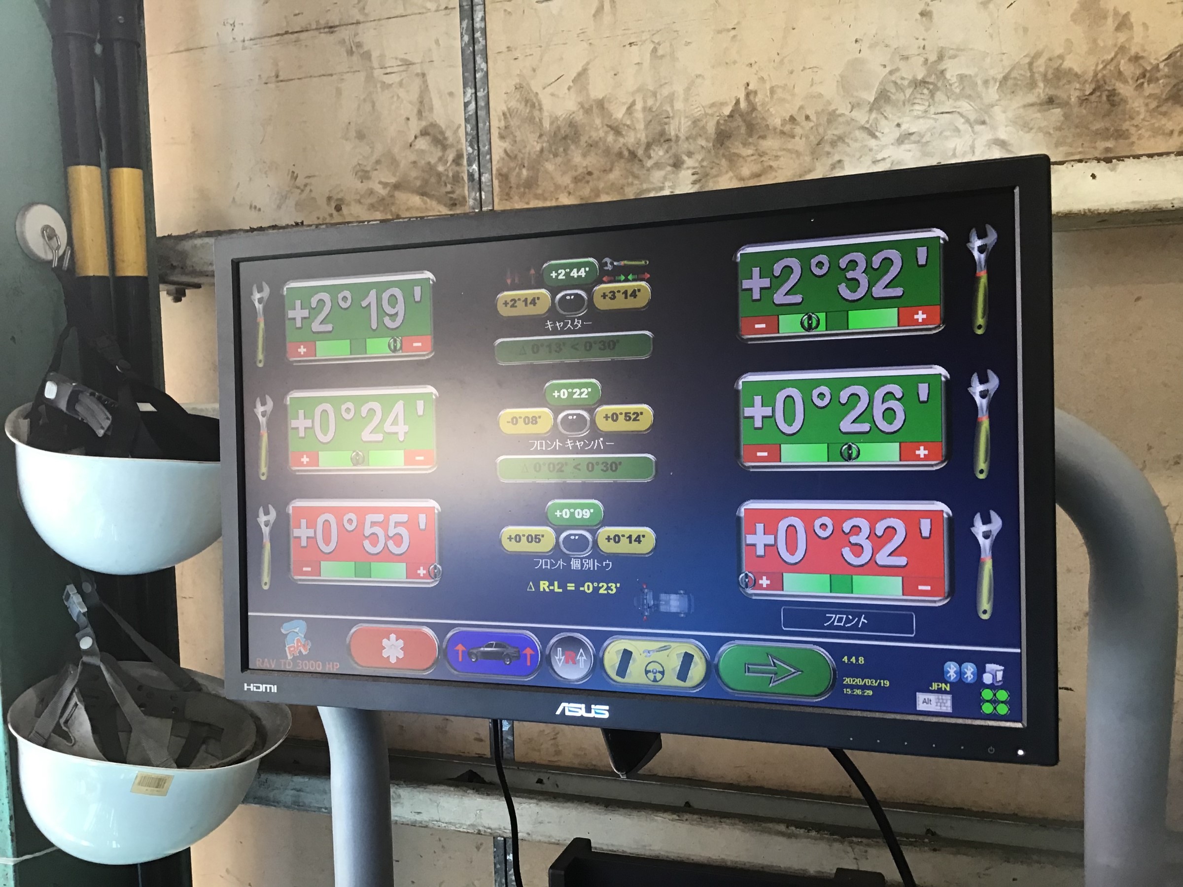 車高が大幅に変わった事によりタイヤの取り付け角度も乱れてしまったのでアライメント調整で適正化!これで安心してお車を運転して頂けます!