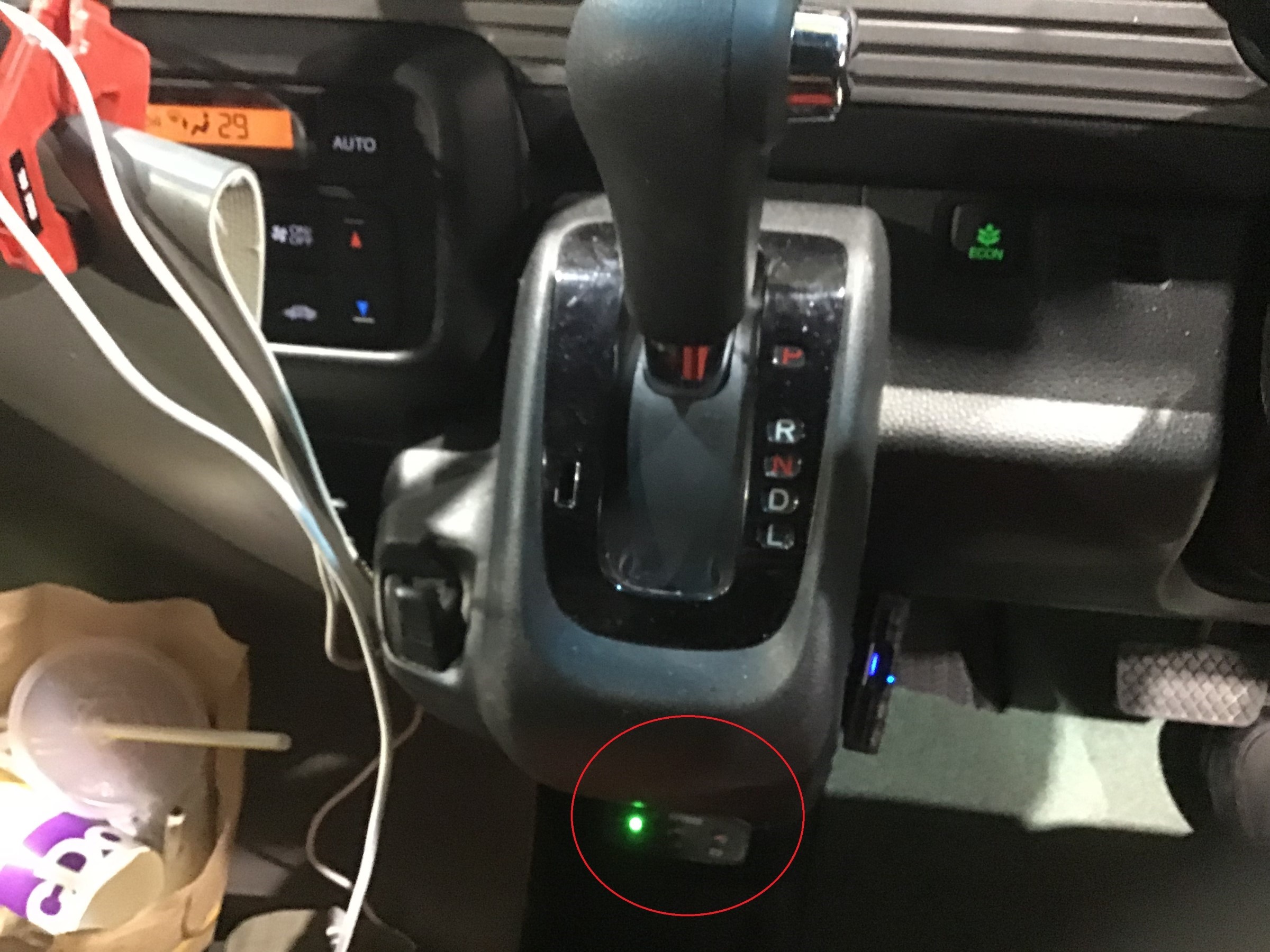 センサー本体は車内のお好みの場所へお取り付けが可能!視認性の良いハンドル近辺や写真の様にシフトレバーの近く等お客様のご希望に沿えます( ^^) _旦~~