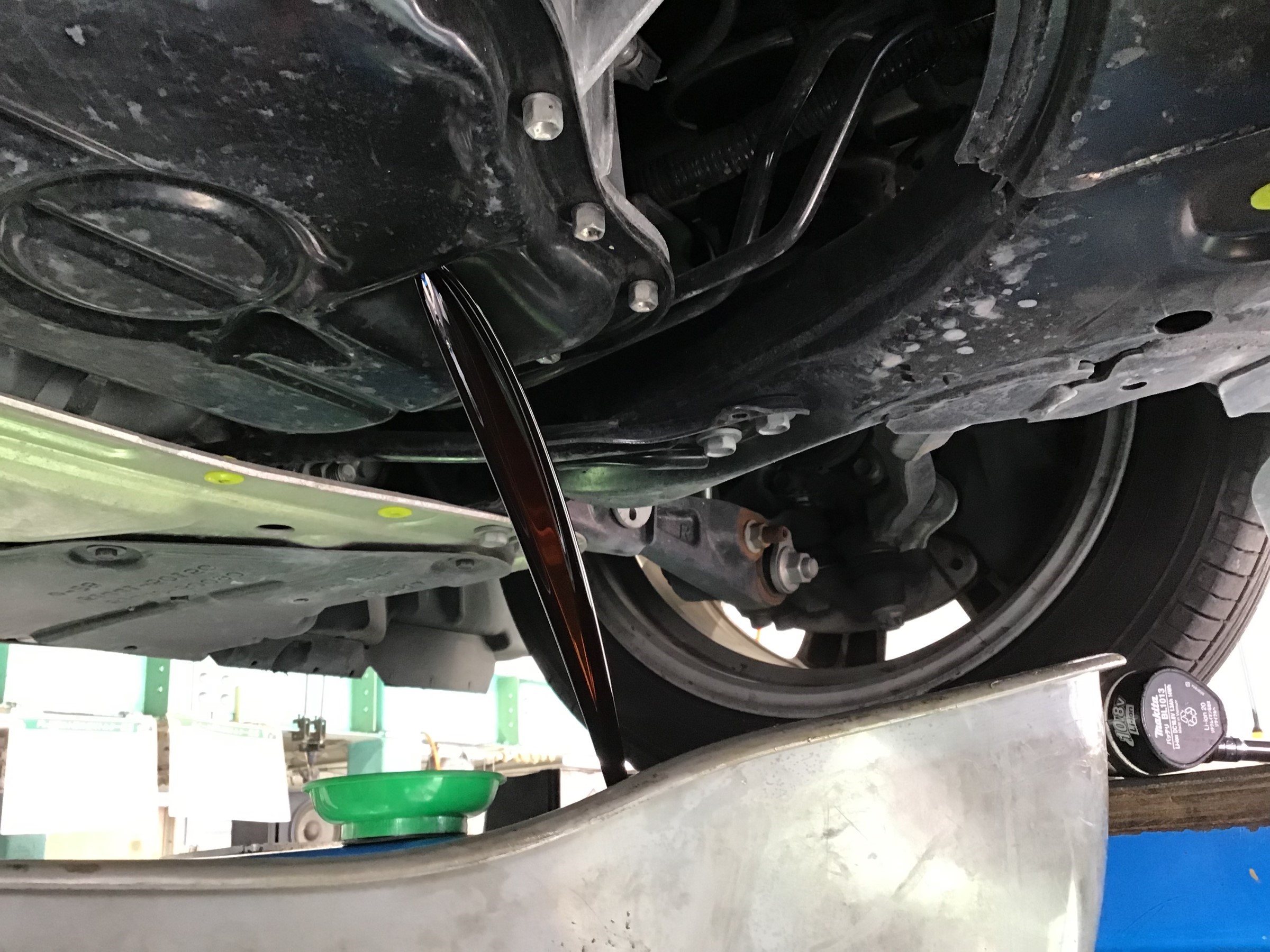 古オイルは””下抜き””作業!極力古いオイルがお車に残らない様に作業しております!!