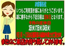 9月定休日のおしらせです!