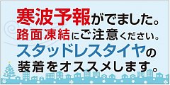 今週末からいよいよ寒波到来!! ご注意ください!
