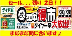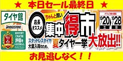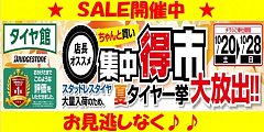 いつもタイヤ館 松原のホームページをご覧いただきありがとうございます! 【 店長オススメ ちゃんと買い 集中得市セール 】は本日をもって終了いたしました。 セール期間中は多くのお客様にご来店・ご成約いただきまして、 誠に有難うございます!! 今後ともタイヤ館 松原をよろしくお願い致しま...