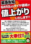 いつもご覧いただきありがとうございます! 本日、値上がり前の緊急セール 3日目が終了しましたm(_ _)m 多くのご来店ありがとうございました!! お電話でのお問い合わせも非常に多く、ニュースなどで既にご存知の方も多くいらっしゃったようです。 6月1日から値上がりが実施されますので、購入...