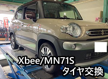 日頃より、当店をご利用いただき、ありがとうございます。 さて、作業いたしましたタイヤ交換作業事例をご紹介します。 (WEB掲載をご快諾いただきましたお客様!大変感謝しております。 いつもご愛顧いただき誠にありがとうございます!!) おクルマ:スズキ/XBEE 作業内容:新品タイヤへの交換作...