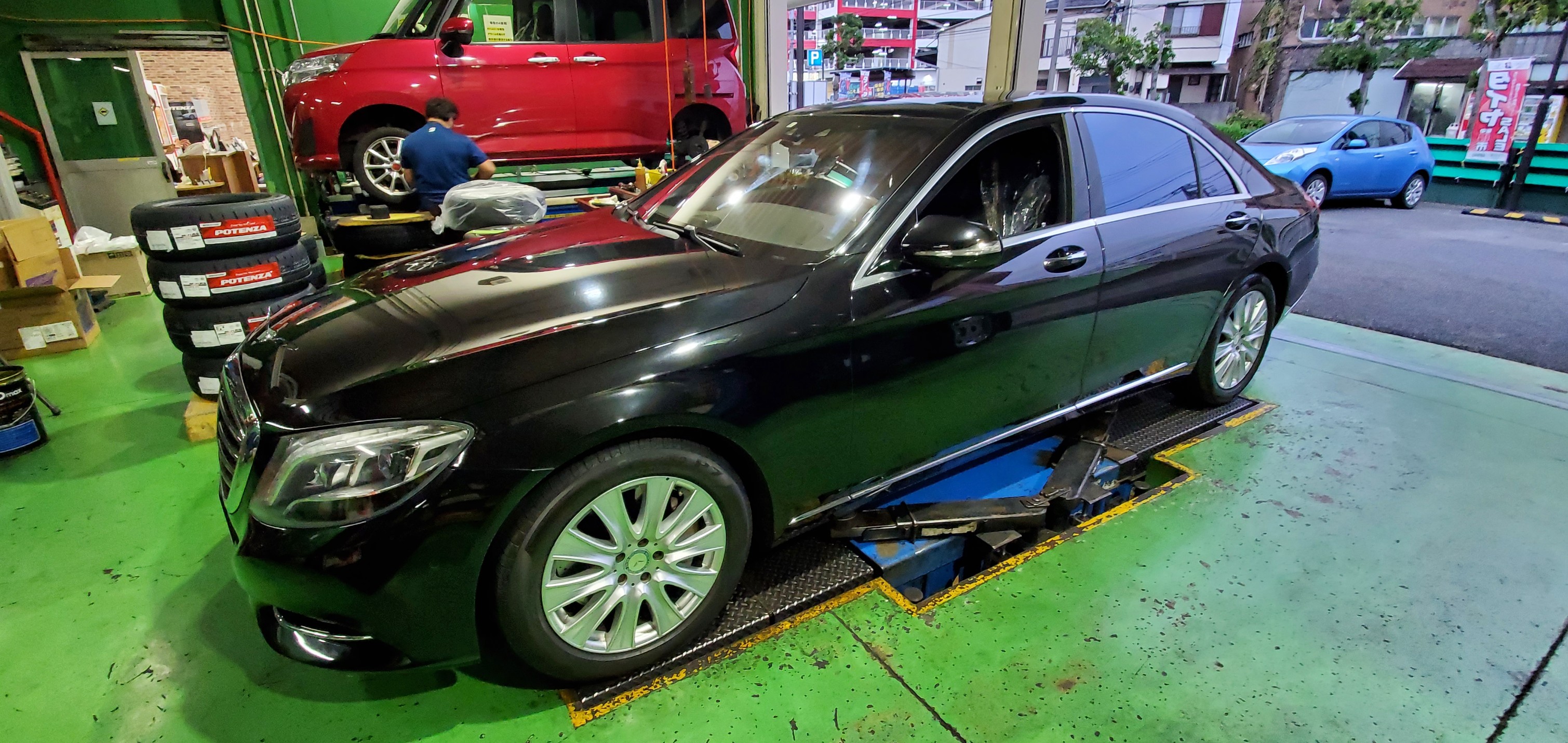 メルセデスベンツ S550 応急的タイヤ交換事例