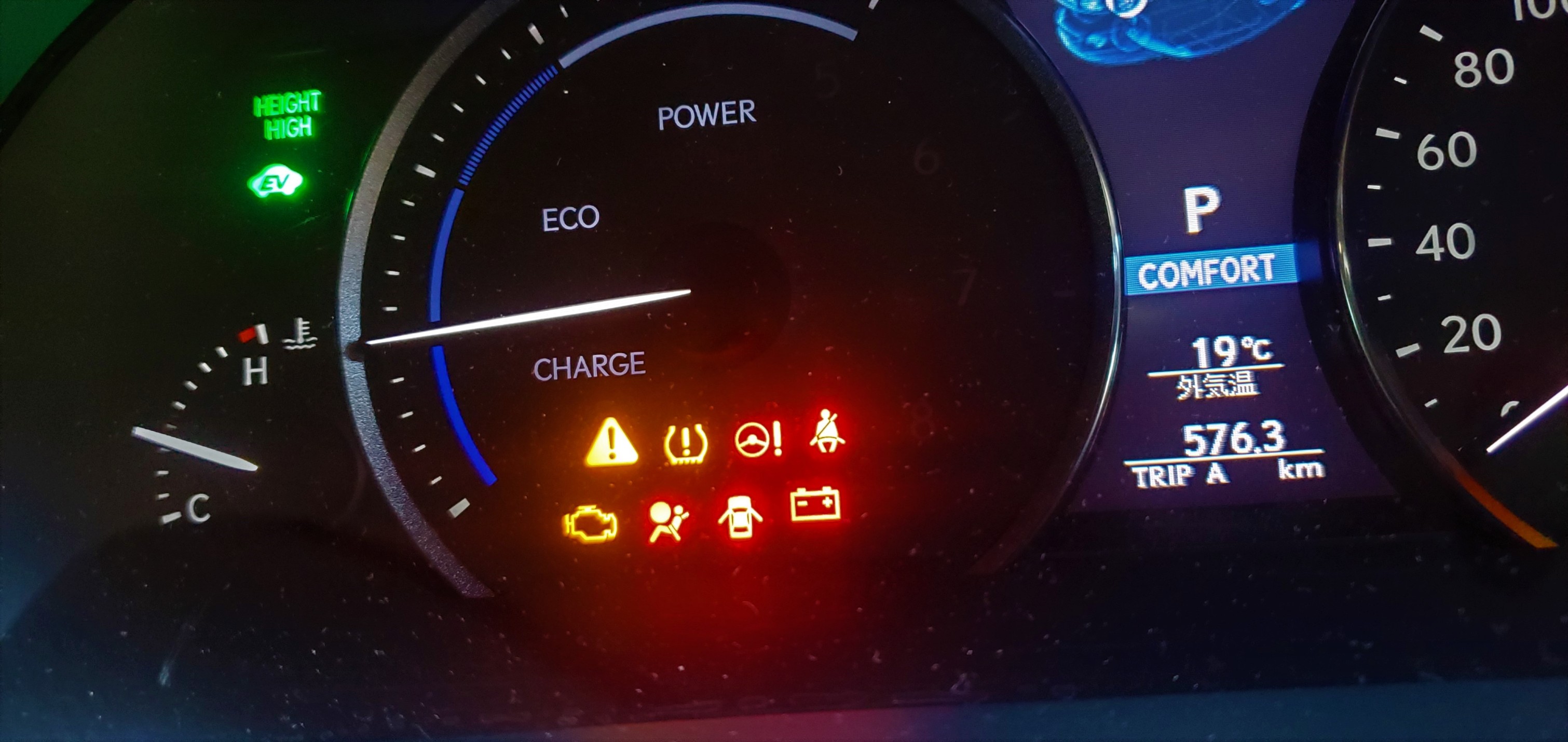 空気圧異常が出た時に付く警告灯がメーターにあり