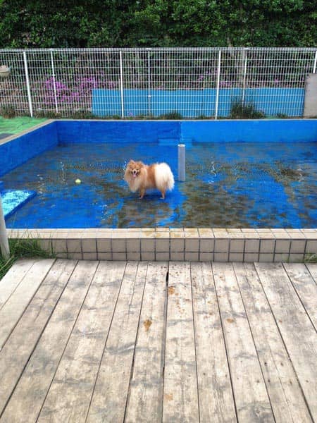 愛犬ハル、プール占拠。
