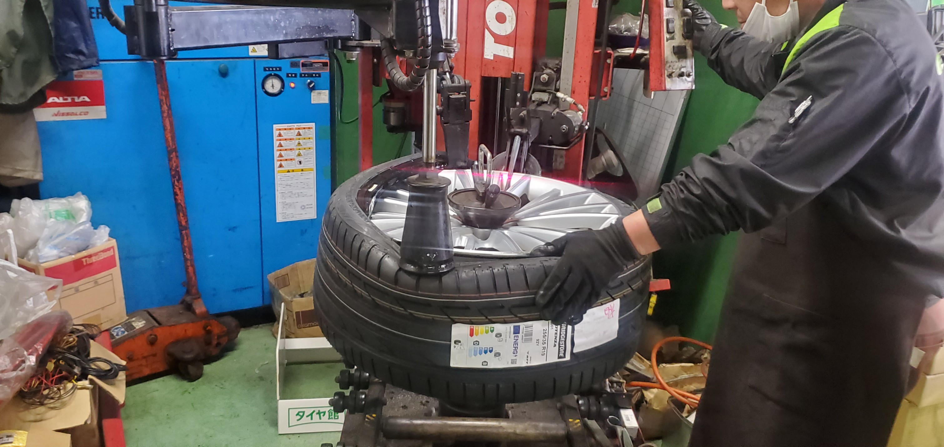 タイヤを組み込むとき、