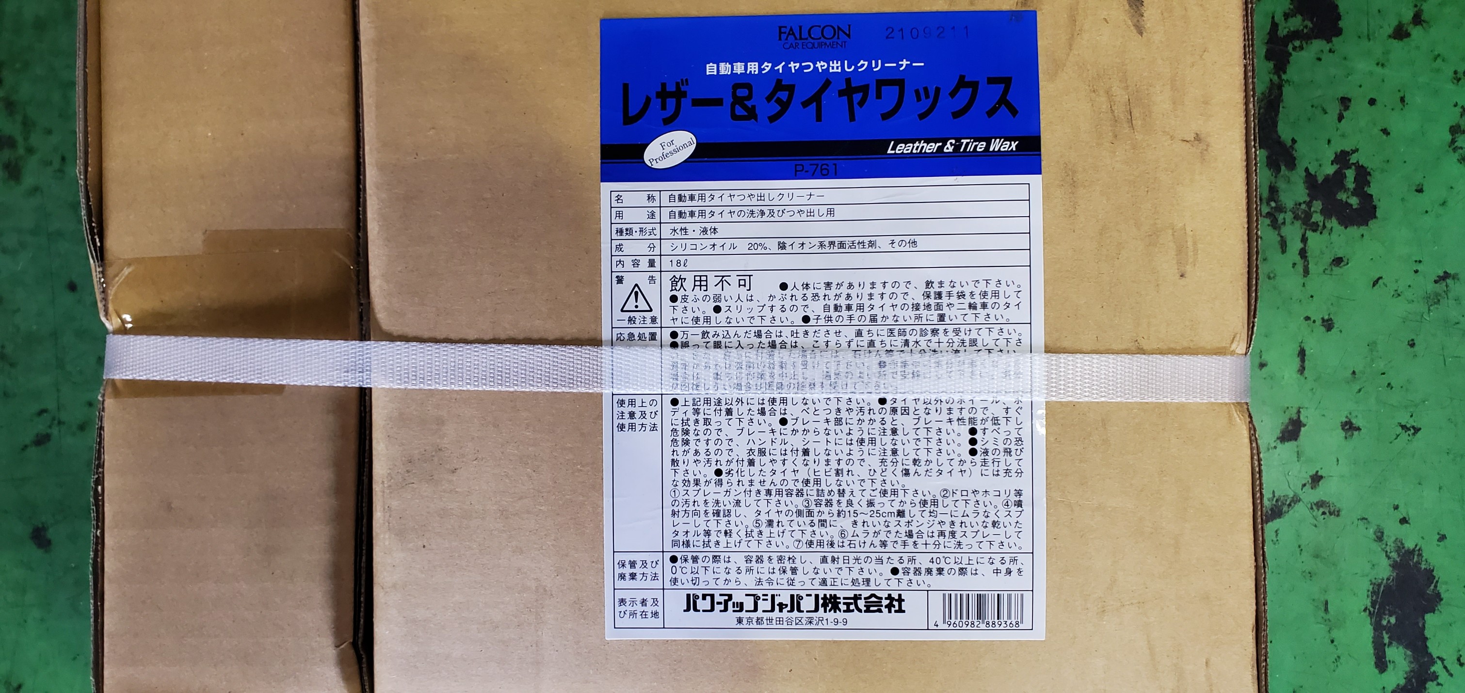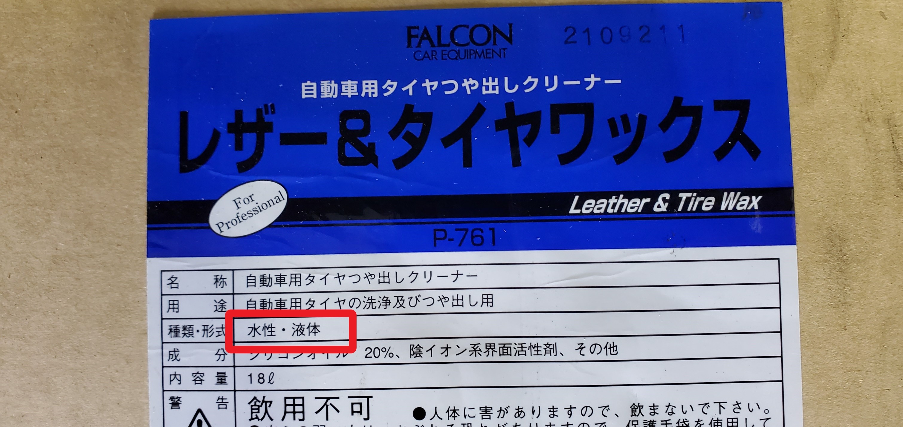 業務用サイズのタイヤワックスの箱ですが、