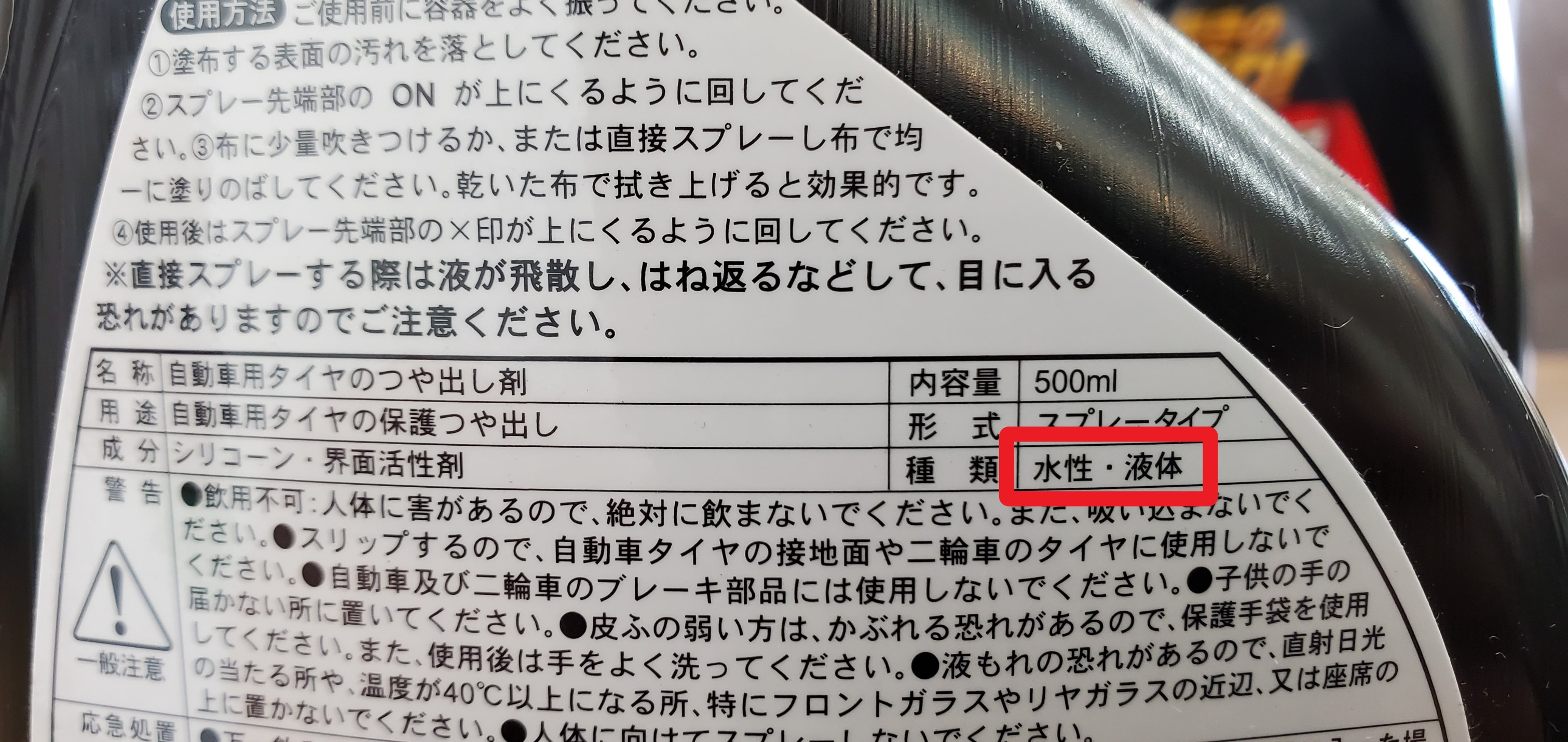 赤く囲ったところに水性・液体とあるように