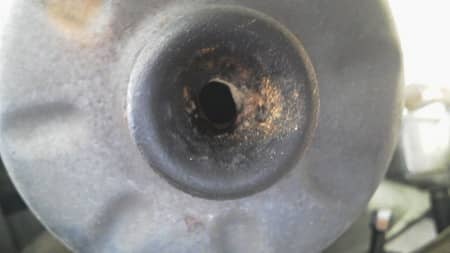 マフラーの穴が塞がってる。蜂(?)の巣で・・