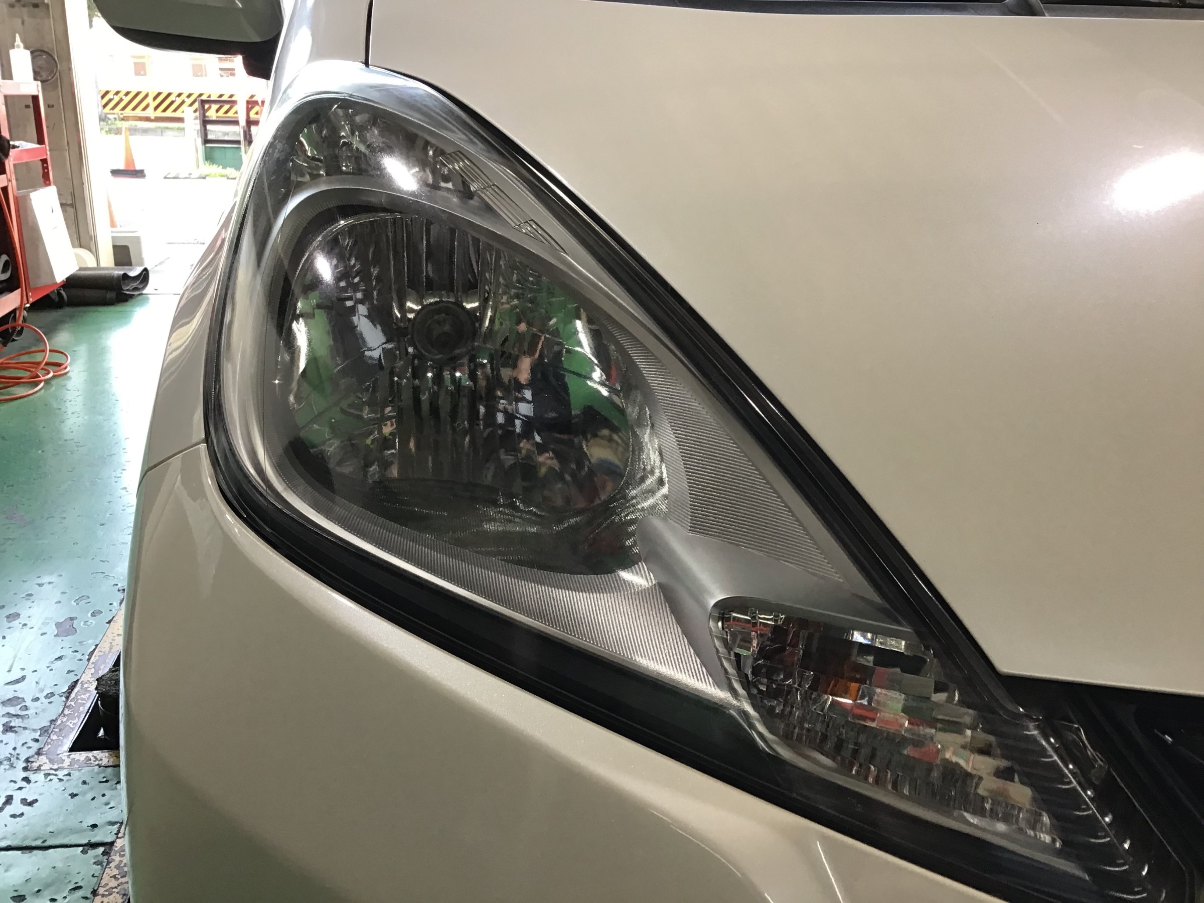ホンダフィットでヘッドライトクリーニングを