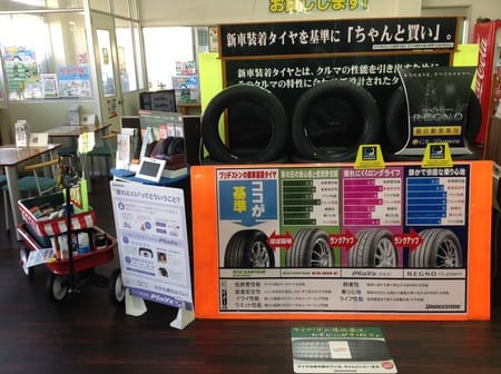 新車装着のタイヤを基準に分かりやすくPOPを作成中です!