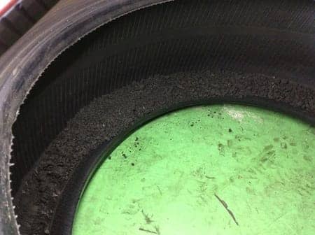 空気圧不足によるタイヤの引きずりという内部損傷が発生しています。
