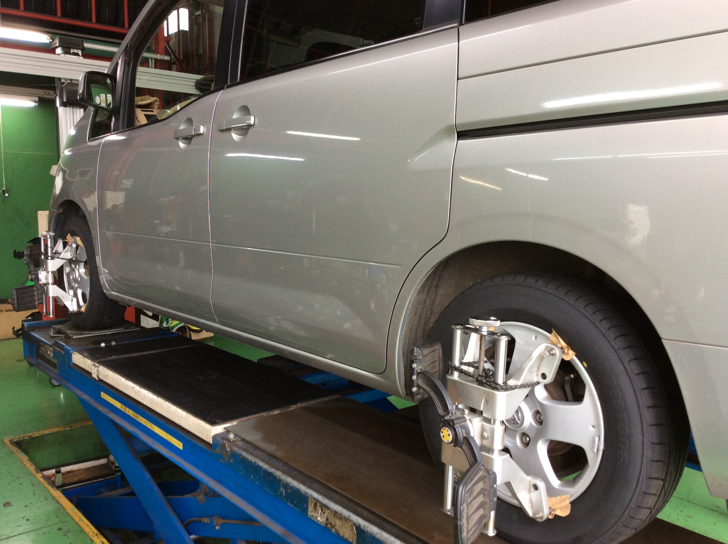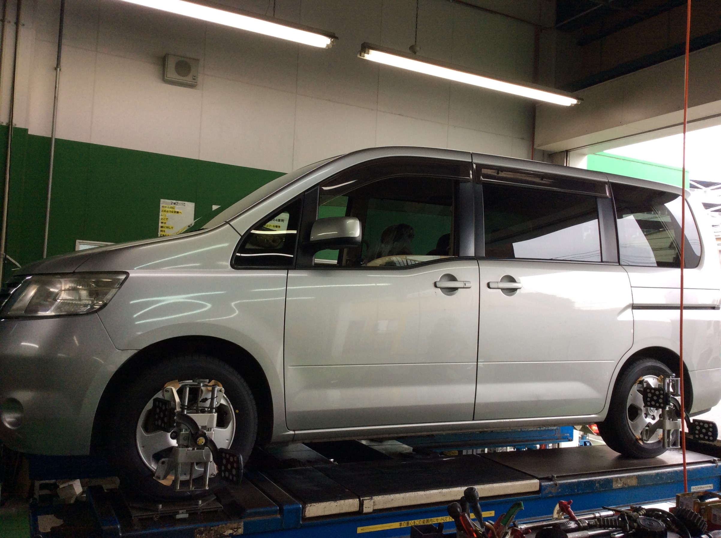 本日は日産セレナのお客様、タイヤ交換と点検時に偏摩耗が見られましたので、アライメント測定、ズレが発生していましたので調整させて頂きました!
