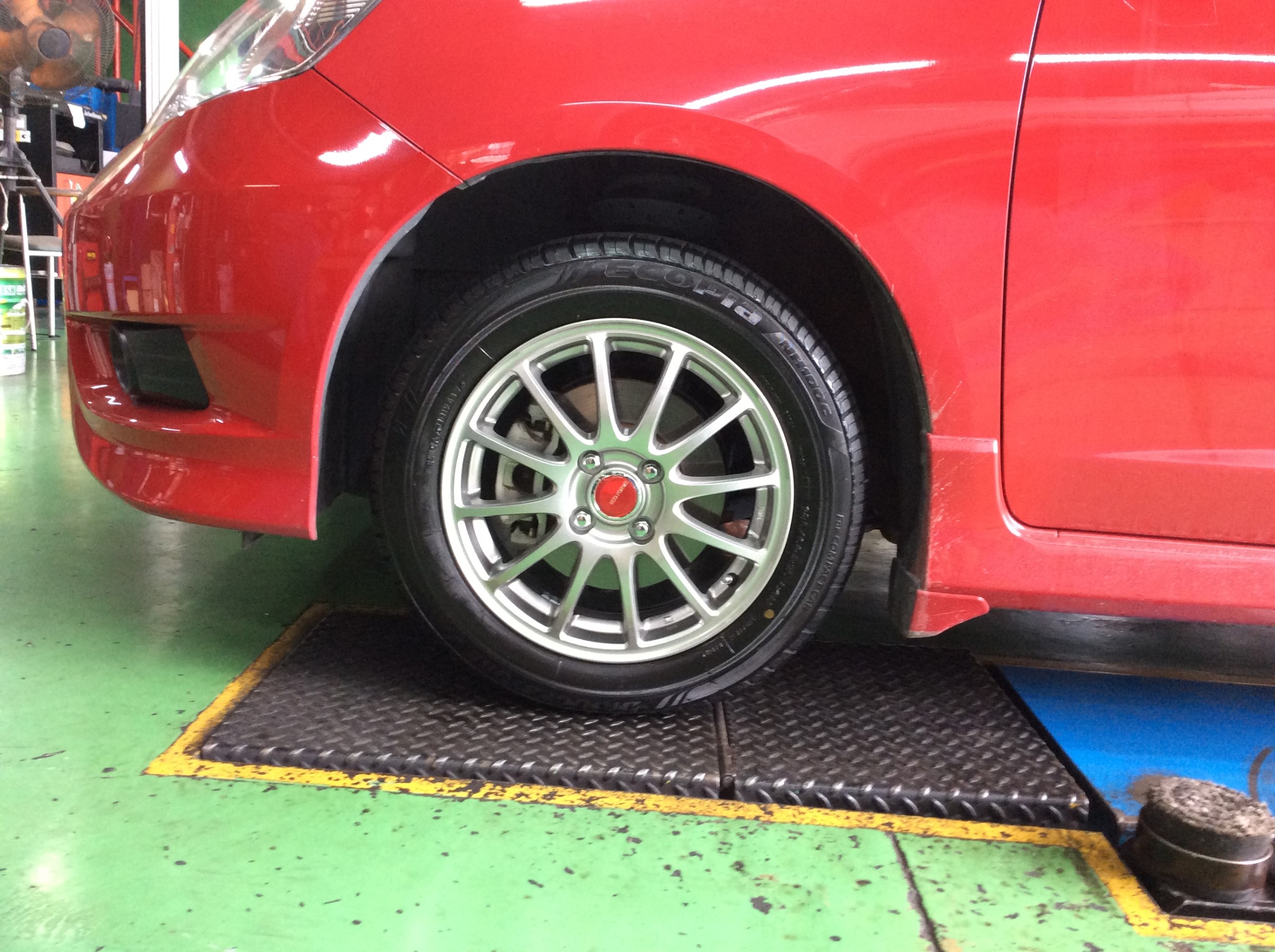 ホイールのセンターキャップも赤に