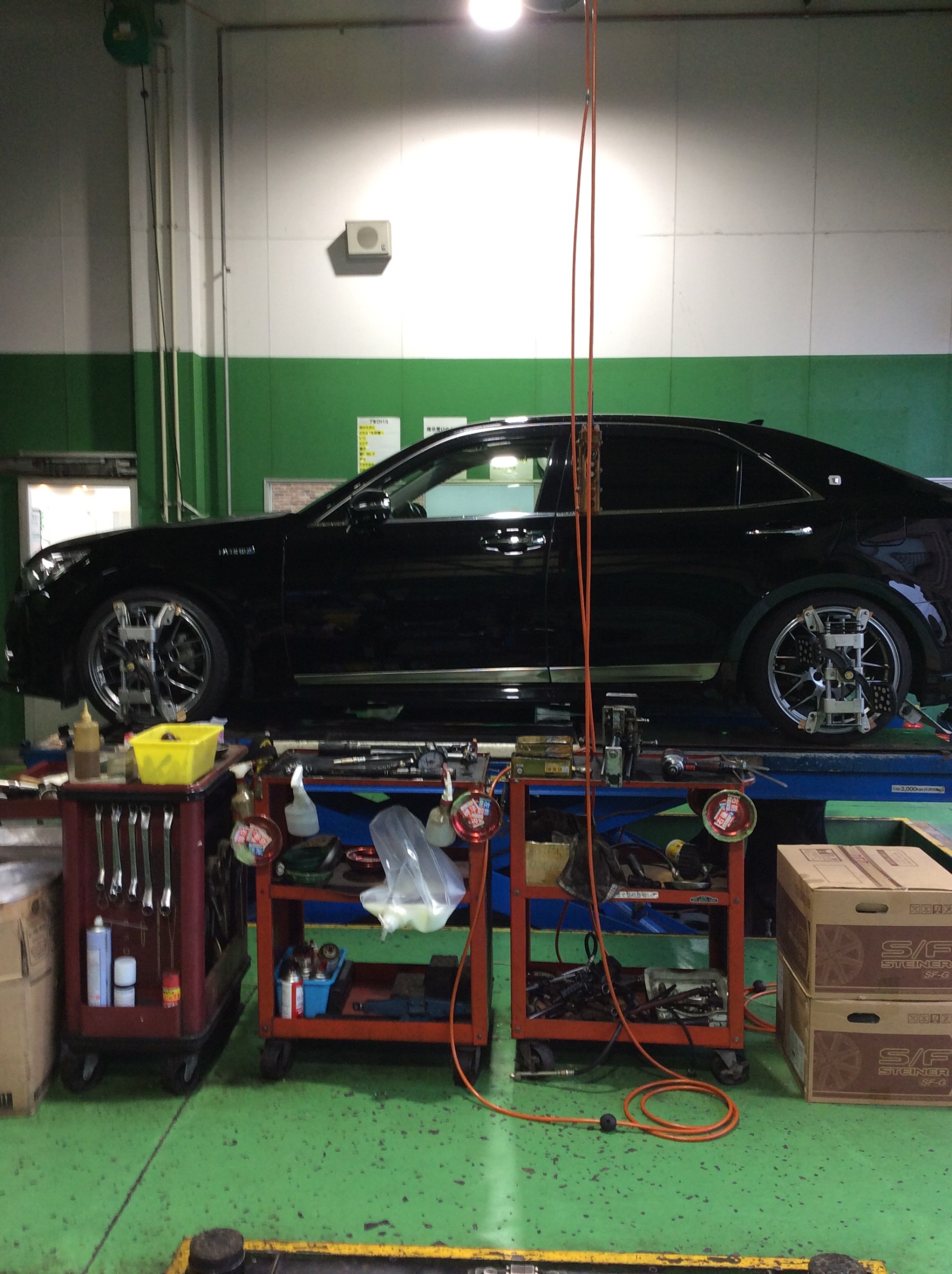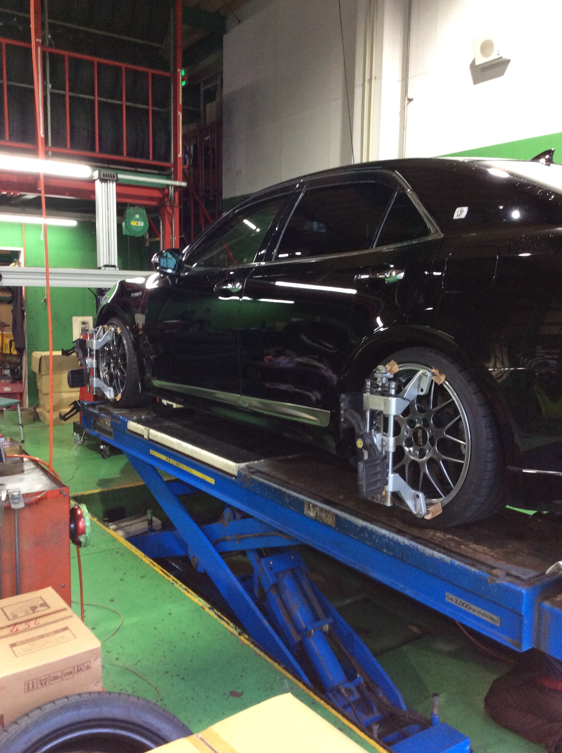 クラウンにお乗りのお客様のお車の、アライメント調整を実施させていただきました<(_ _)>