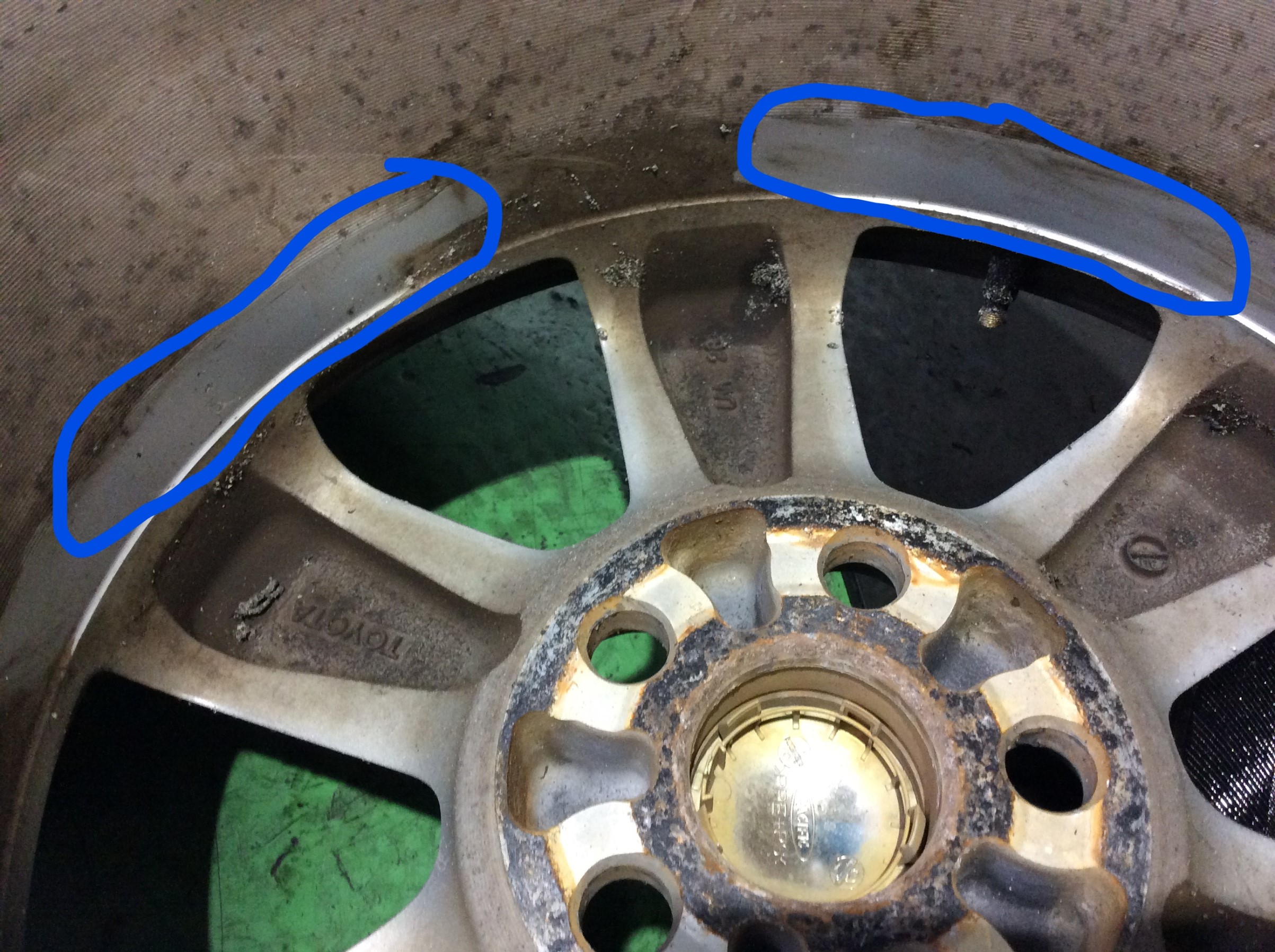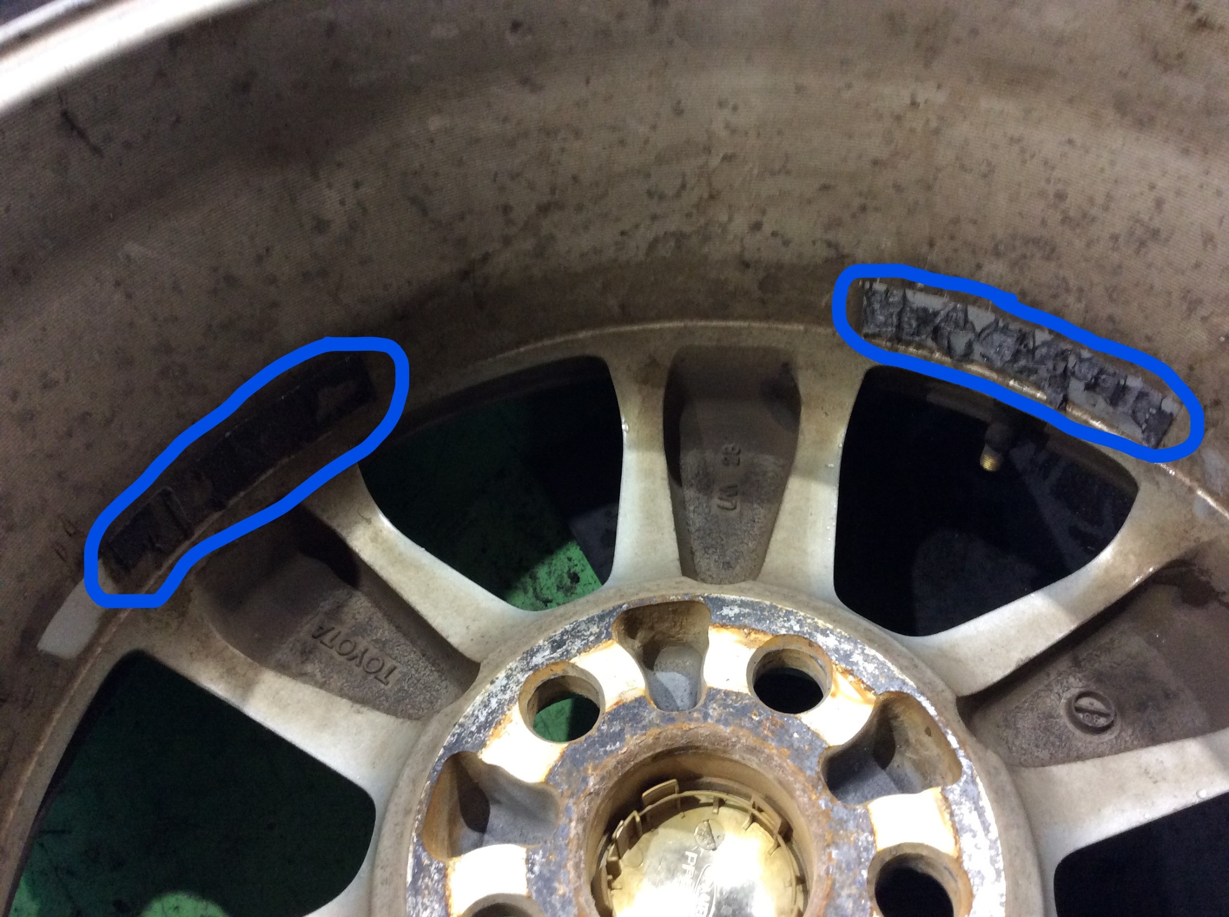 バランス調整時、古いバランスウエイトを剥がします。