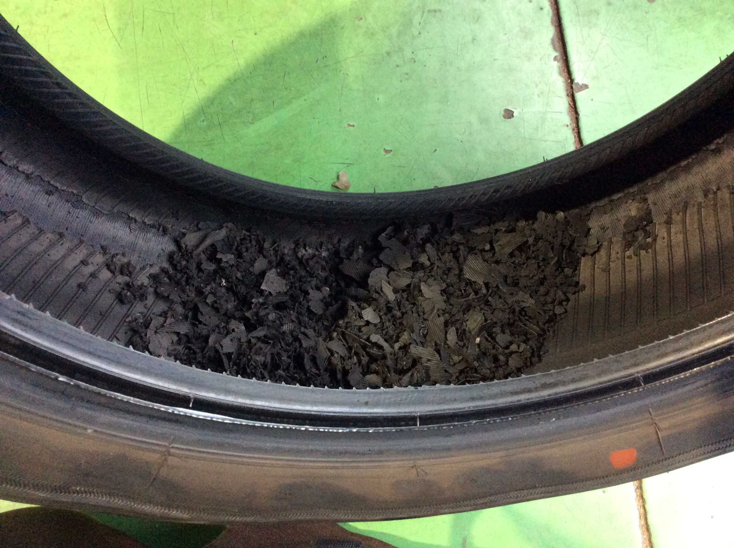 パンクをして空気圧が少ない状態で走行してしまうと、このように内面が削れてしまい