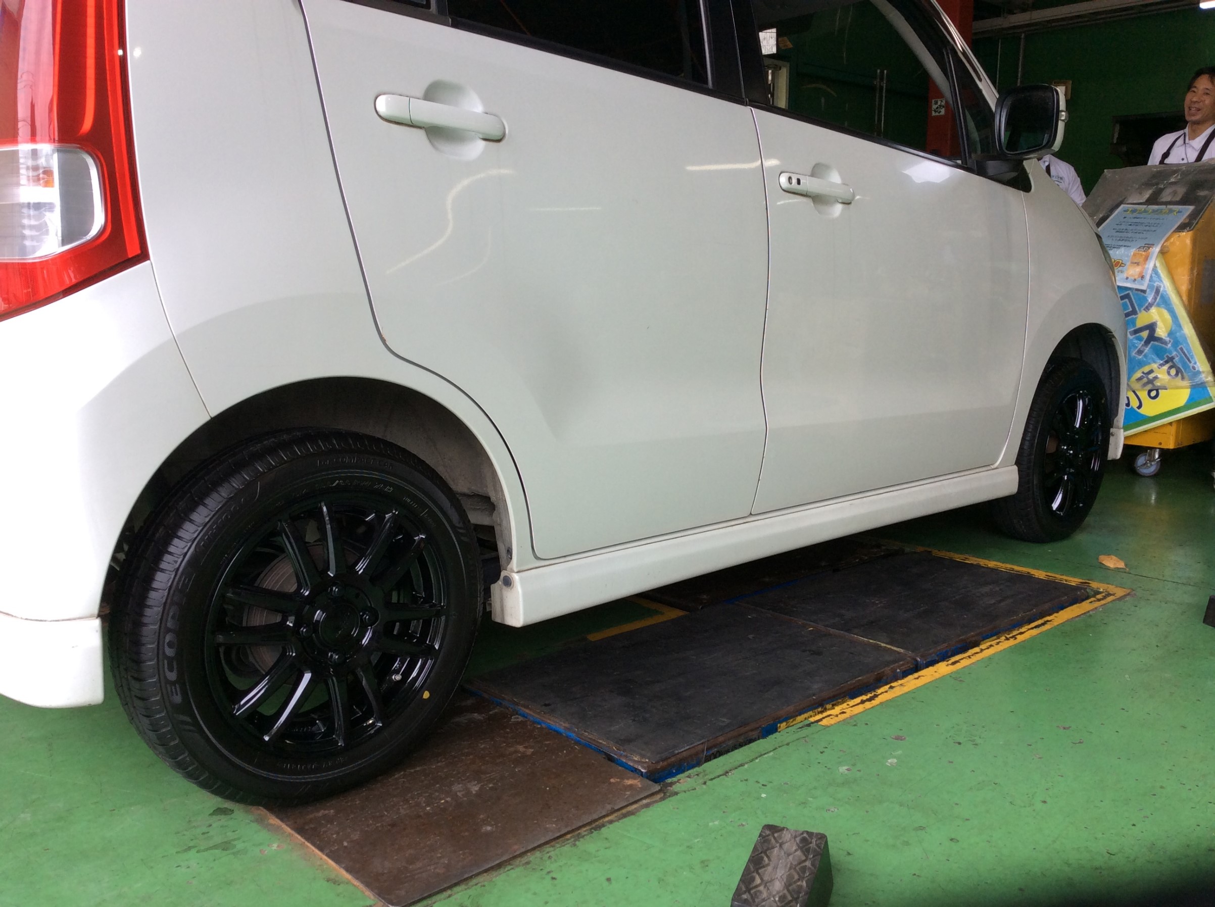 白のボディに黒のホイールがとてもお似合いです
