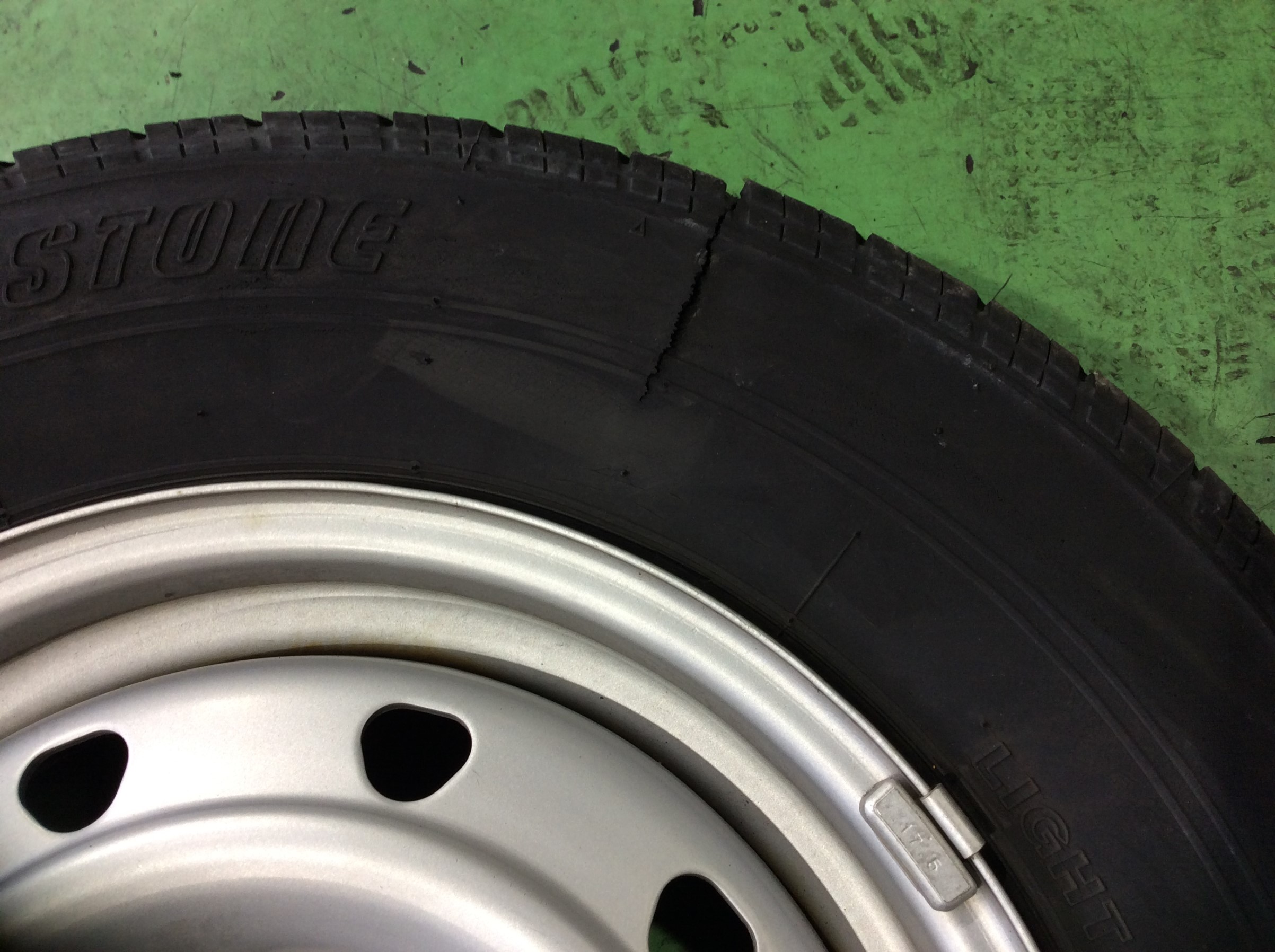 したところタイヤの劣化が進んでおり、ヒビなどが原因だと思われます。