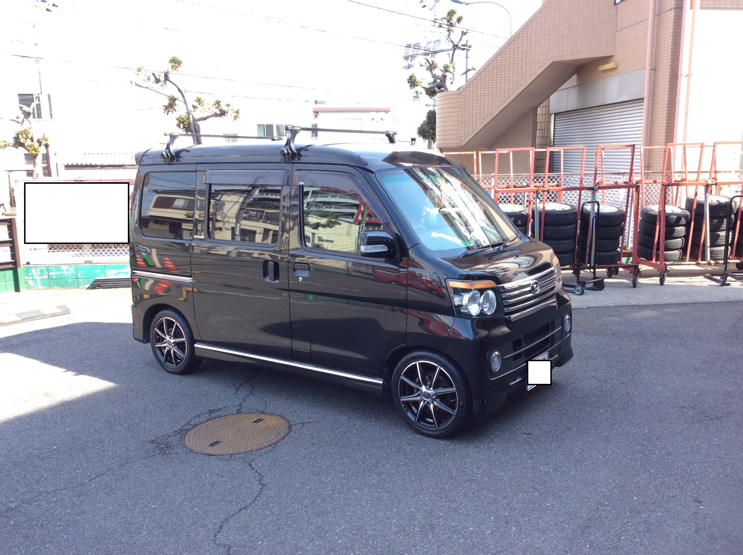 先日、ダイハツ アトレーのお客様にポテンザアドレナリン+スマック・ヴァニッシュの15インチセットをお取付けさせていただきました!