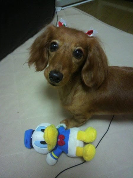 一緒に写っているドナルドは、ワンちゃんお気に入りのおもちゃですo(>∇<)o
