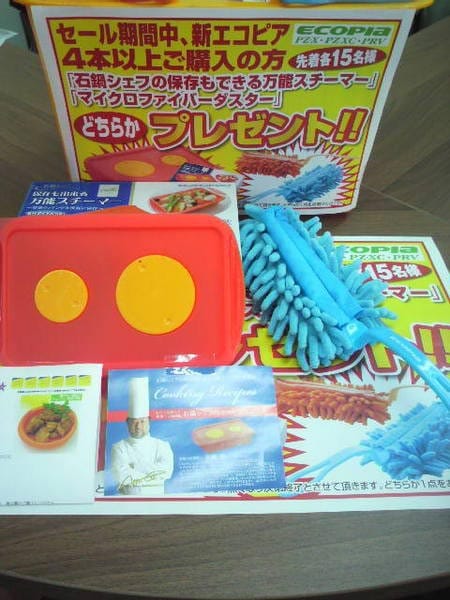 “石鍋シェフの保存もできる万能スチーマー”か“マイクロファイバーダスター”の