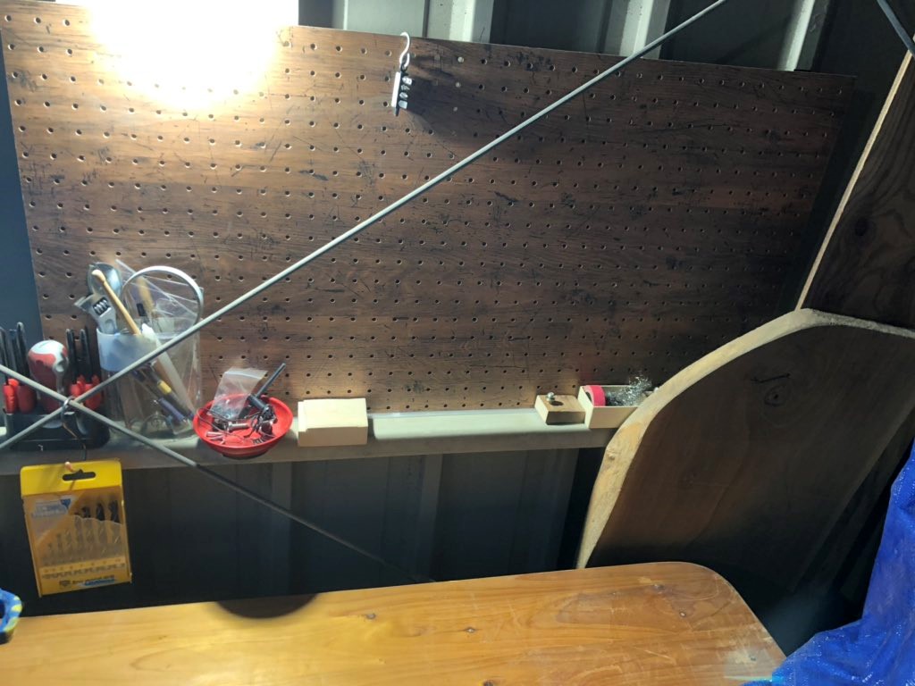 ここにフックなどを引っかけて工具たちを並べていく計画です(^o^)
