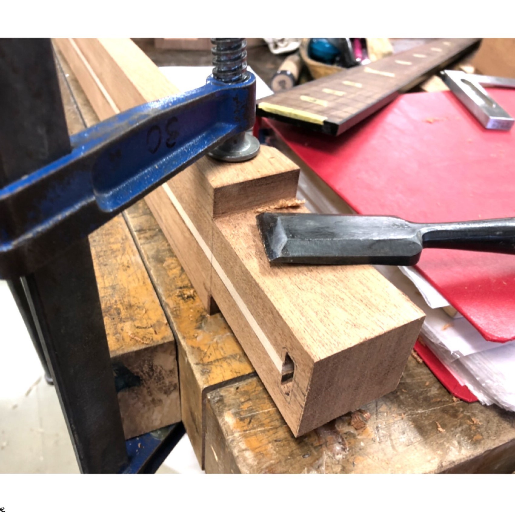 ネックはボディとの接合部を隙間ないようノミで成形します♪