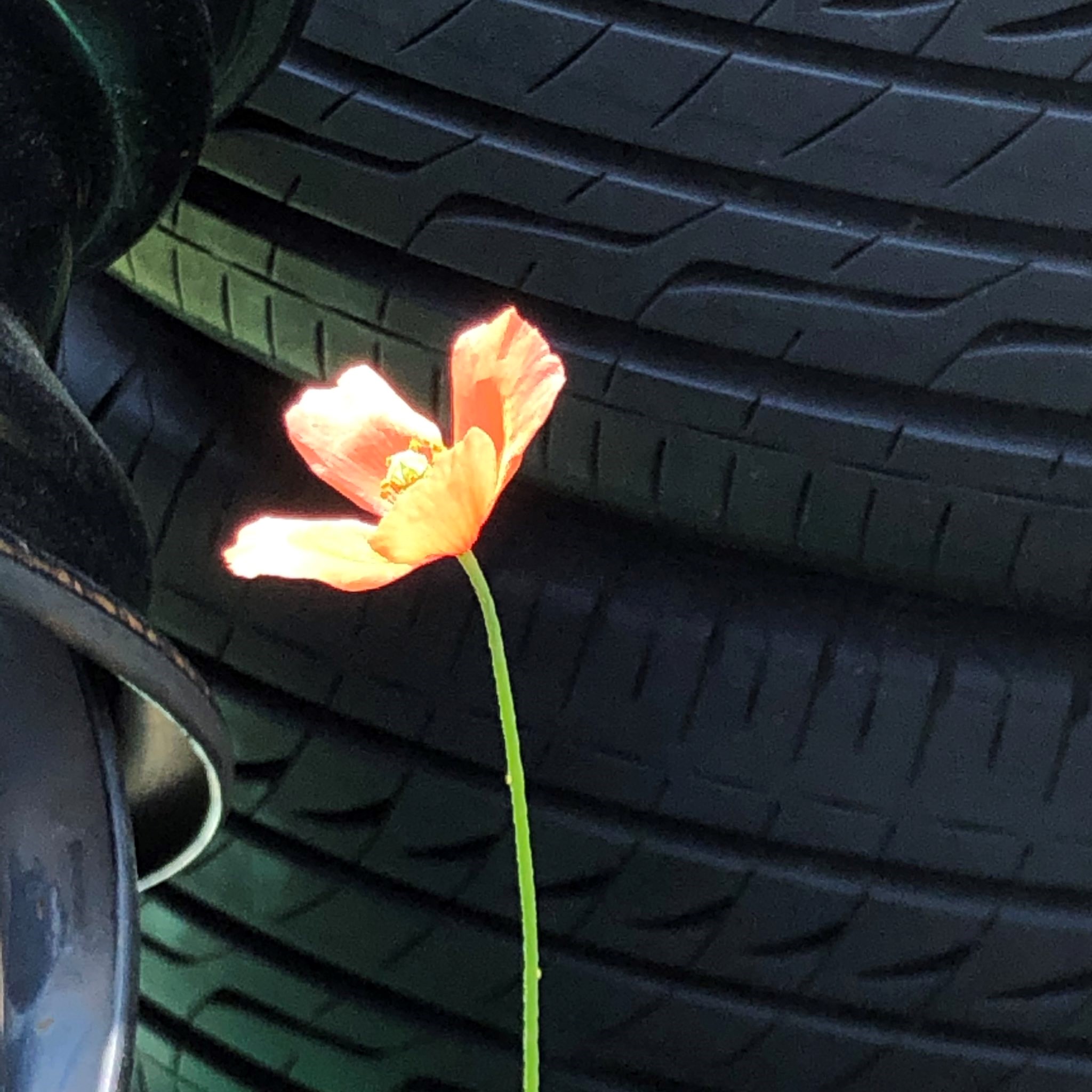 ナガミヒナゲシがタイヤの前で可憐に咲いておりましたよ~♪