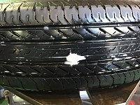 パンクにより、タイや交換をさせていただきました。 タイヤがパンクしたら? 先ずはパンクであろう疑わしい箇所を探します。 タイヤに泡をかけて空気が出てきました。 こうしてパンク箇所を確認できます。 パンクの原因はというと...ネジが刺さっておりました。 *白く塗ってある箇所です 早速タイ...