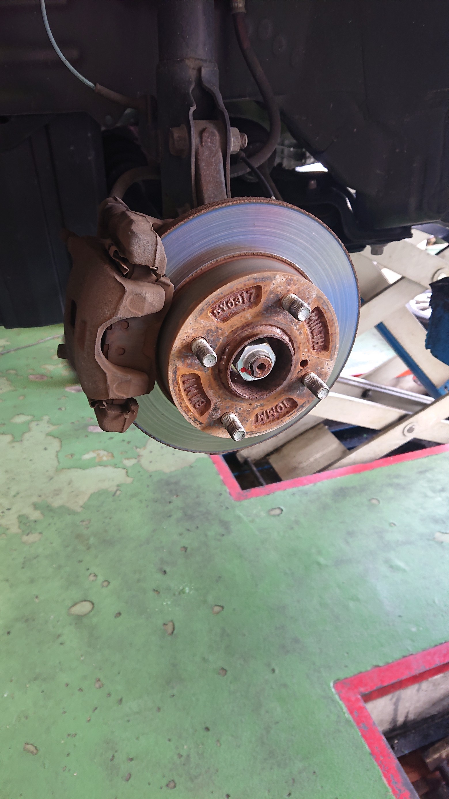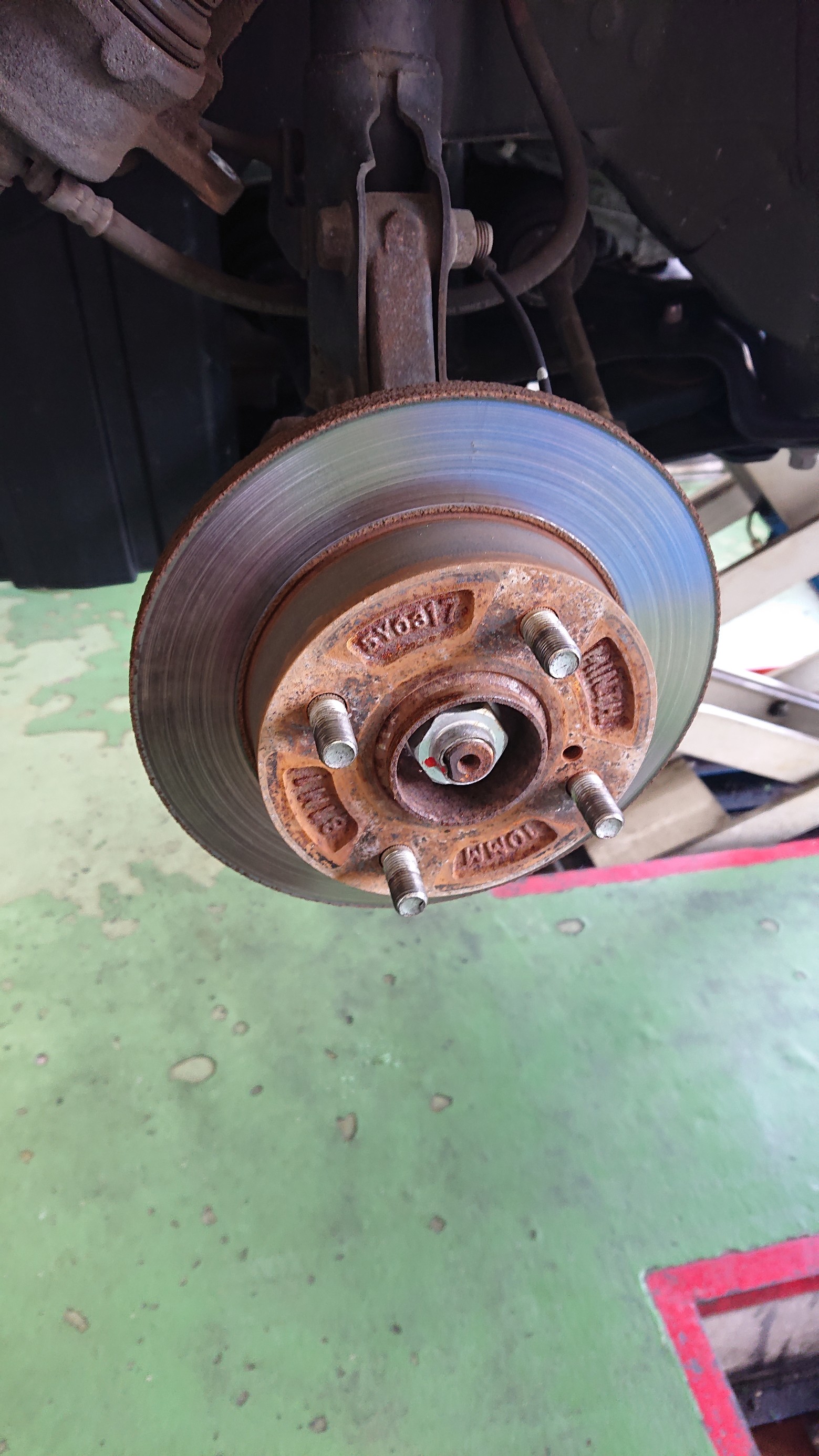 錆びも発生していて、ローターも段付きになっています。