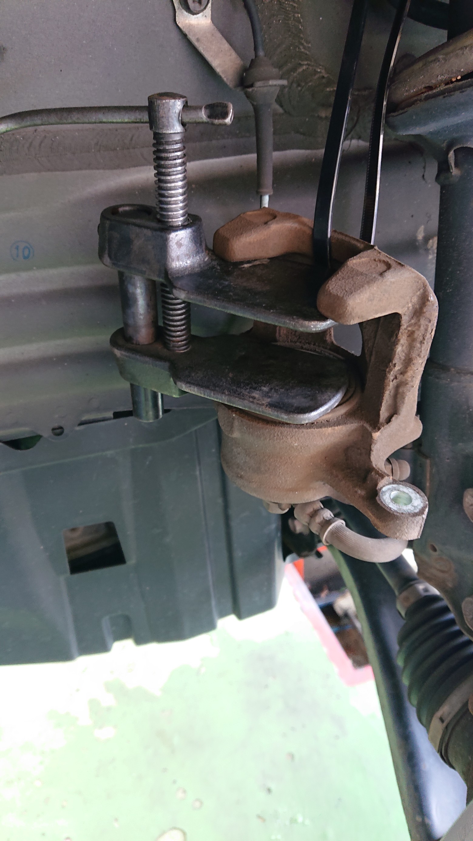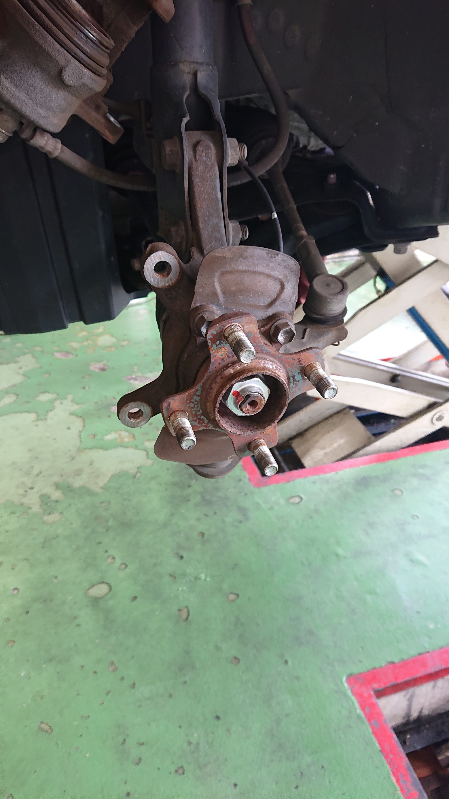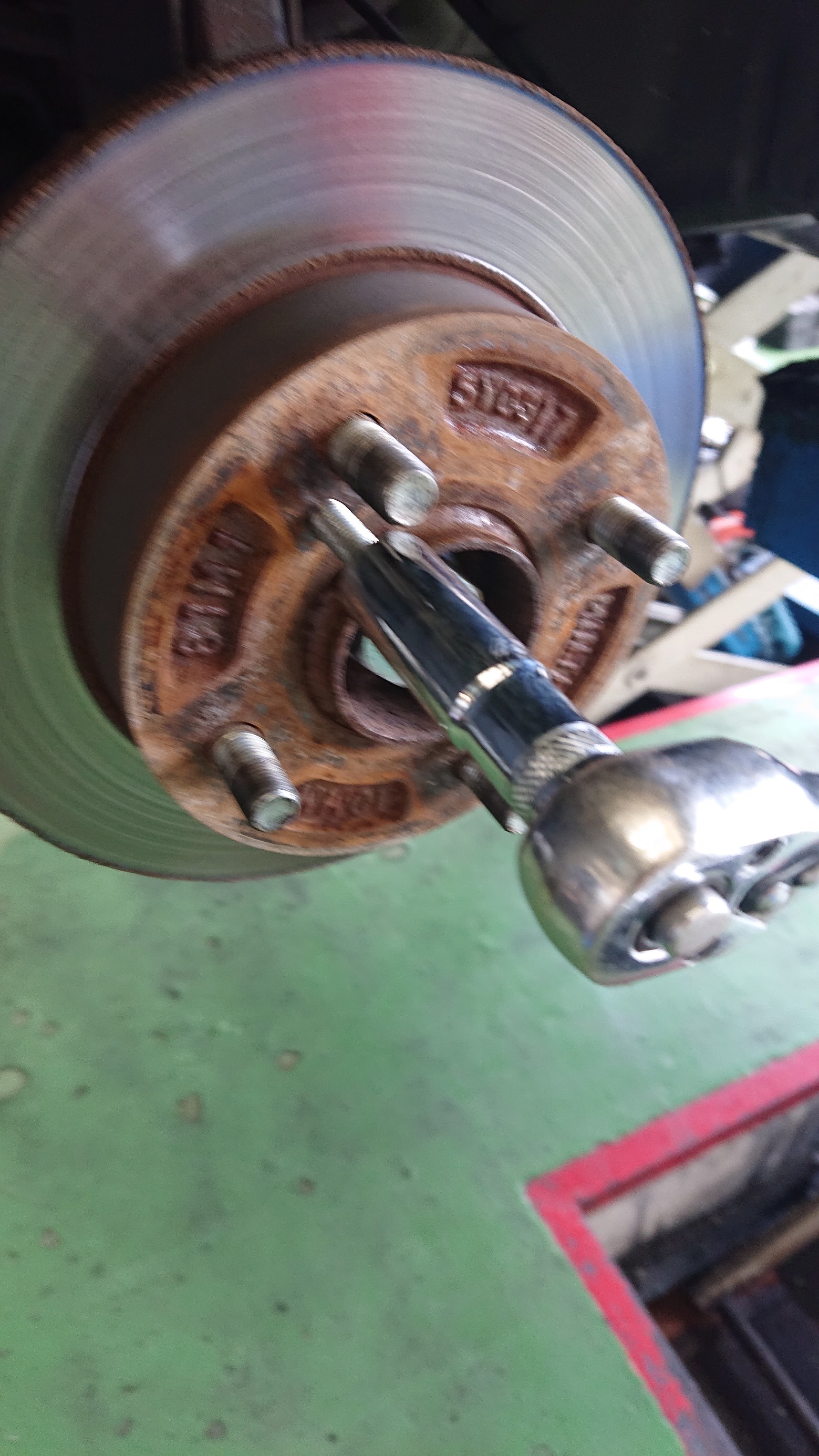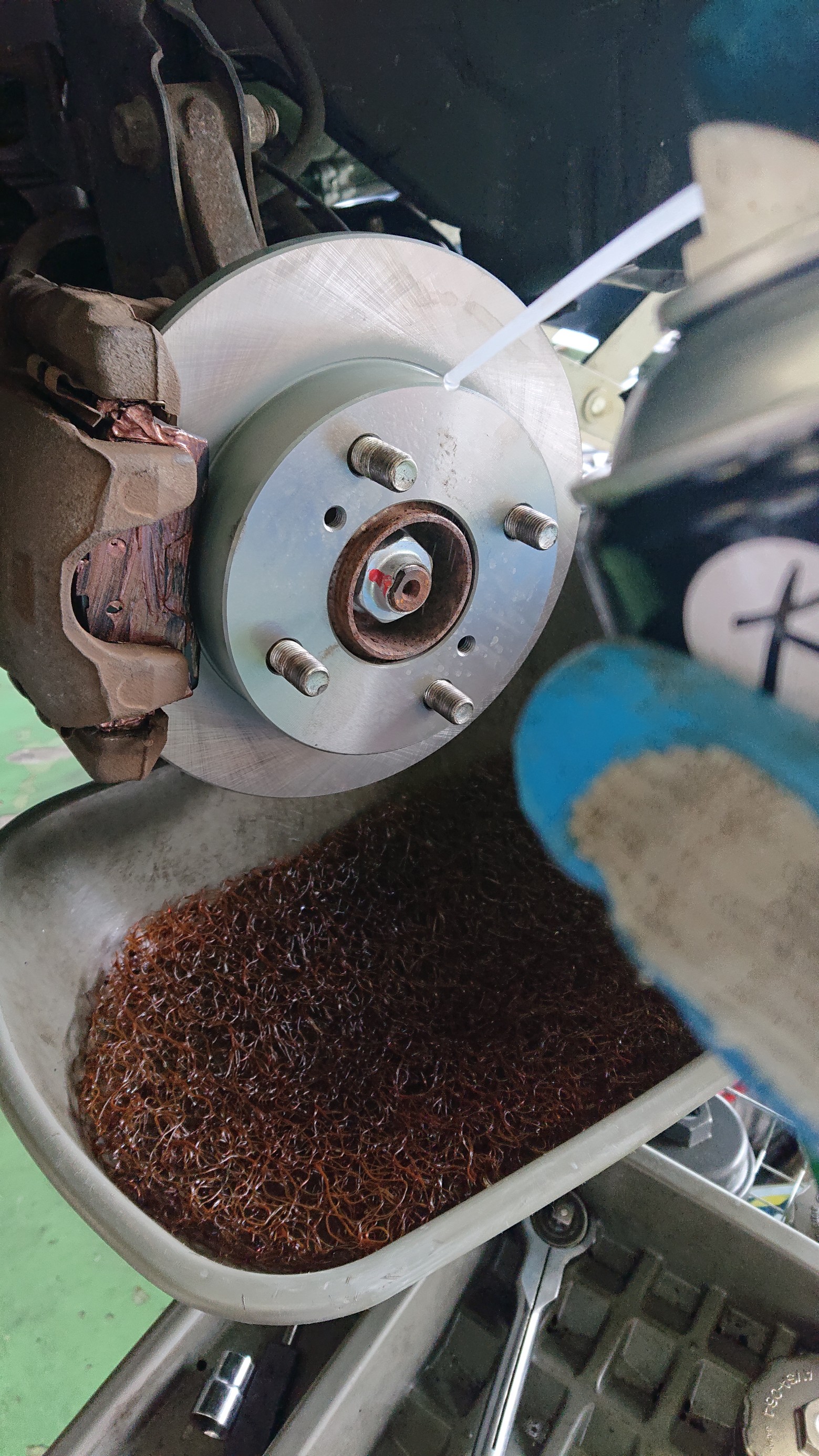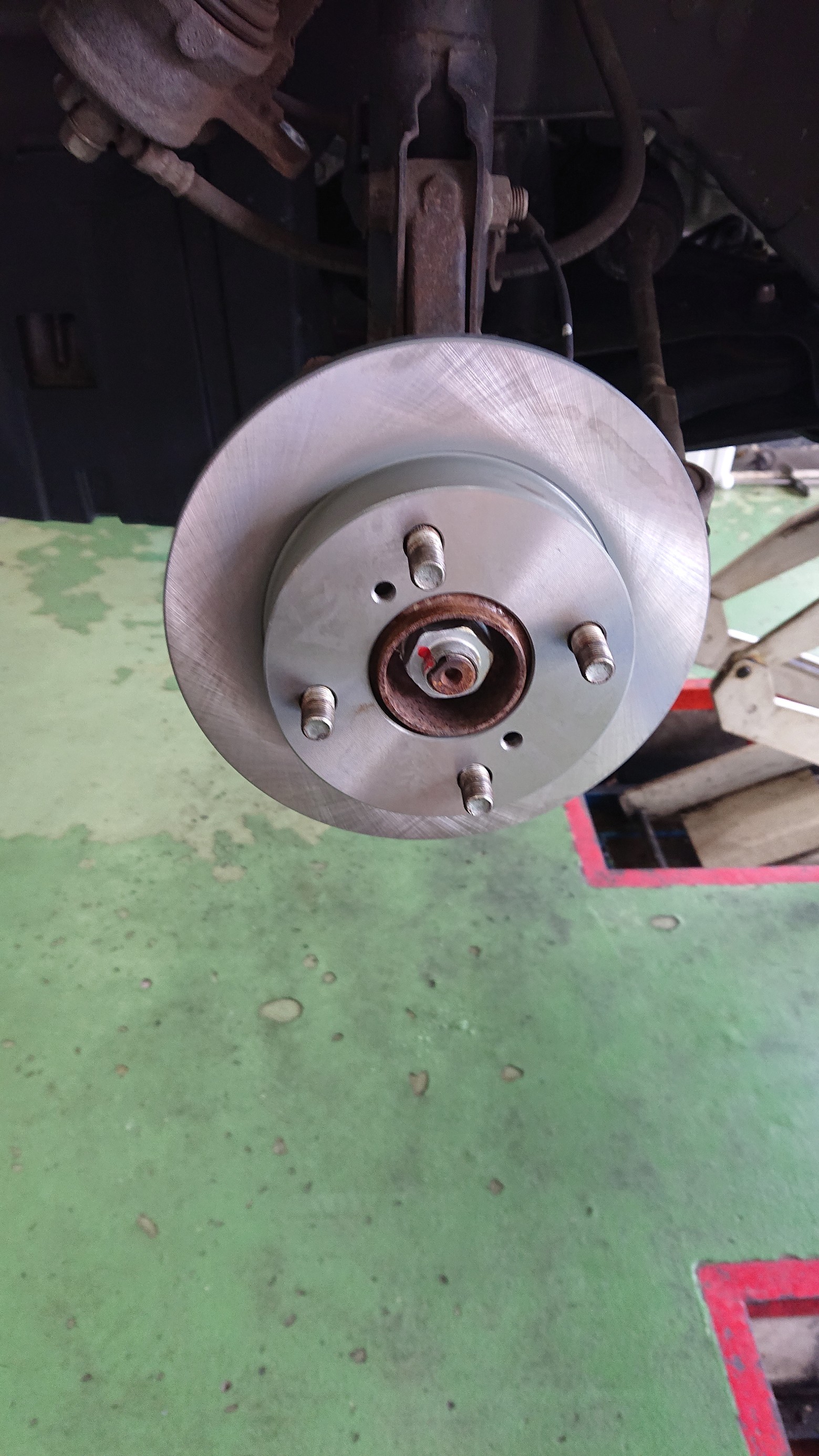 ローターとハブが固着しているので、ボルトを使って外していきます。