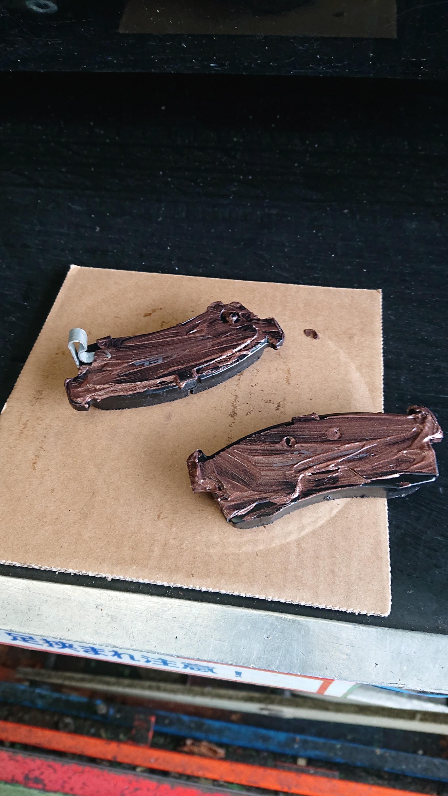 新品のパッドに鳴き防止のグリスを塗ります。