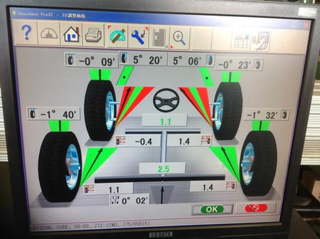 左のタイヤの外側の減りが早いとの事でした