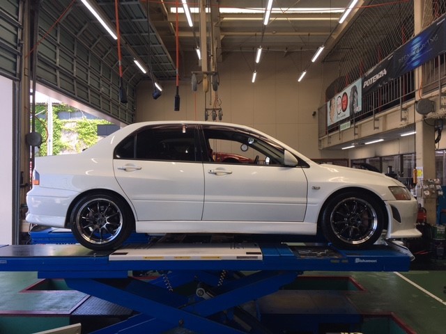 本日はミツビシ・ランサーエボリューションのタイヤ・ホイール交換のご紹介(*^^*)