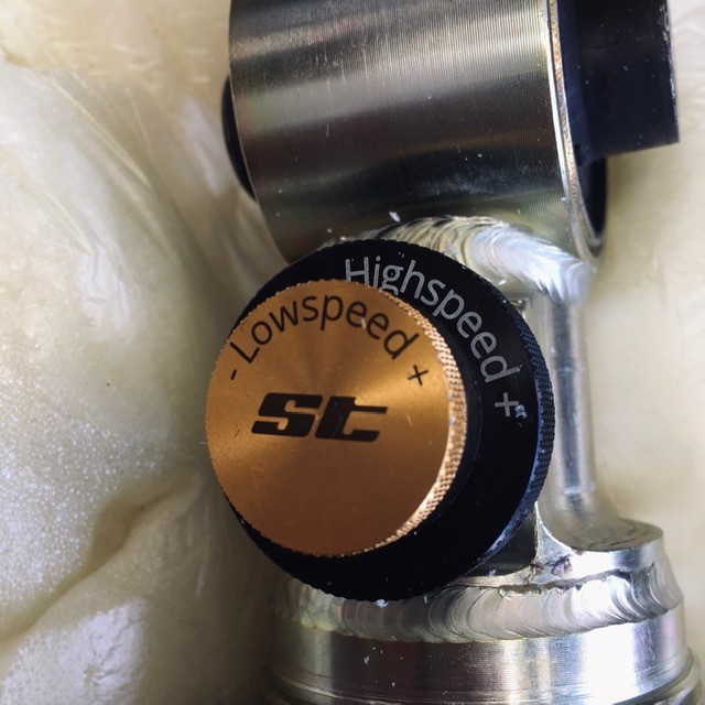 そして伸び側の減衰力調整はサス上側にあります。