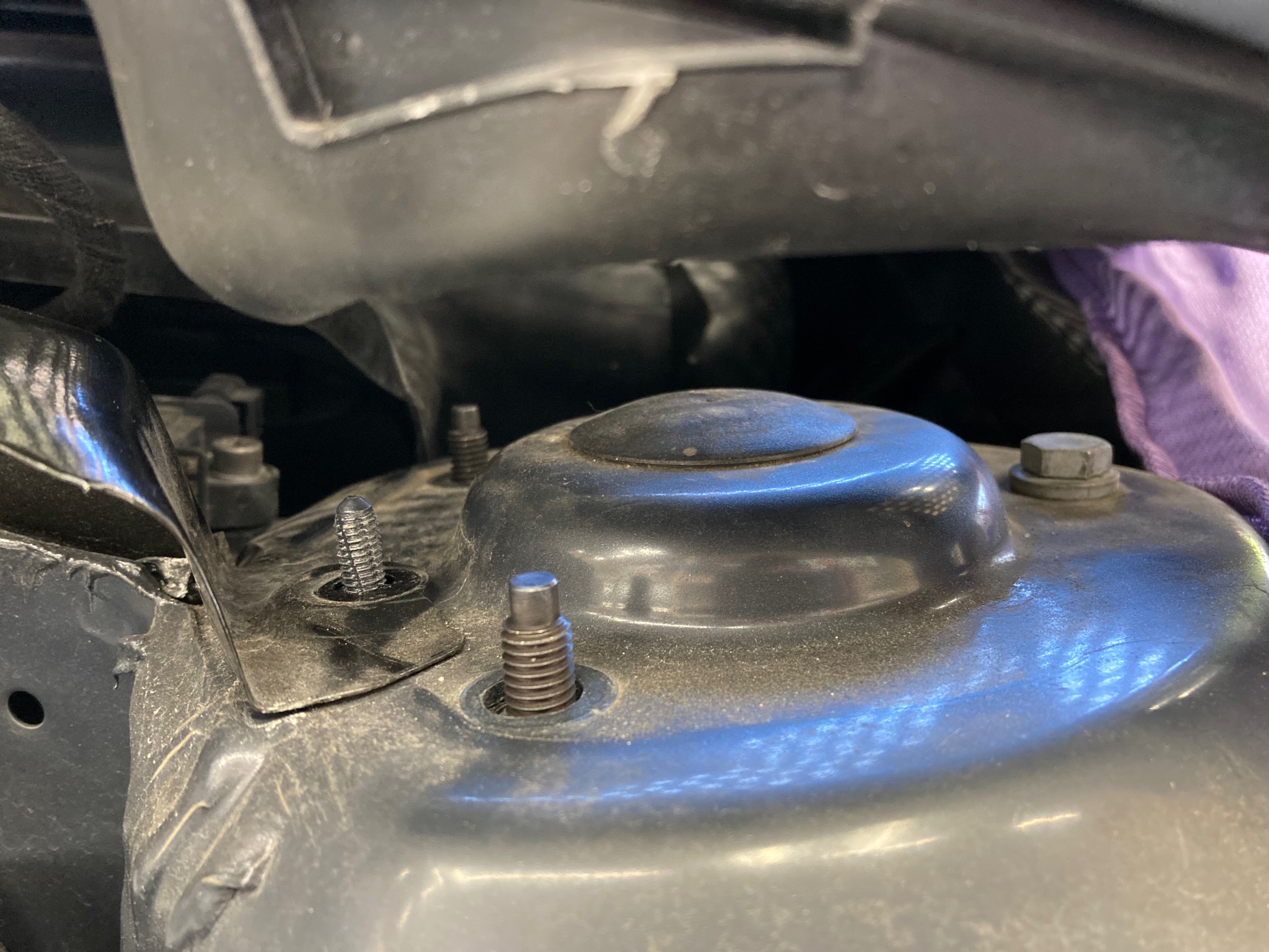 カバーを浮かせ、ストラット締結ボルトを緩め