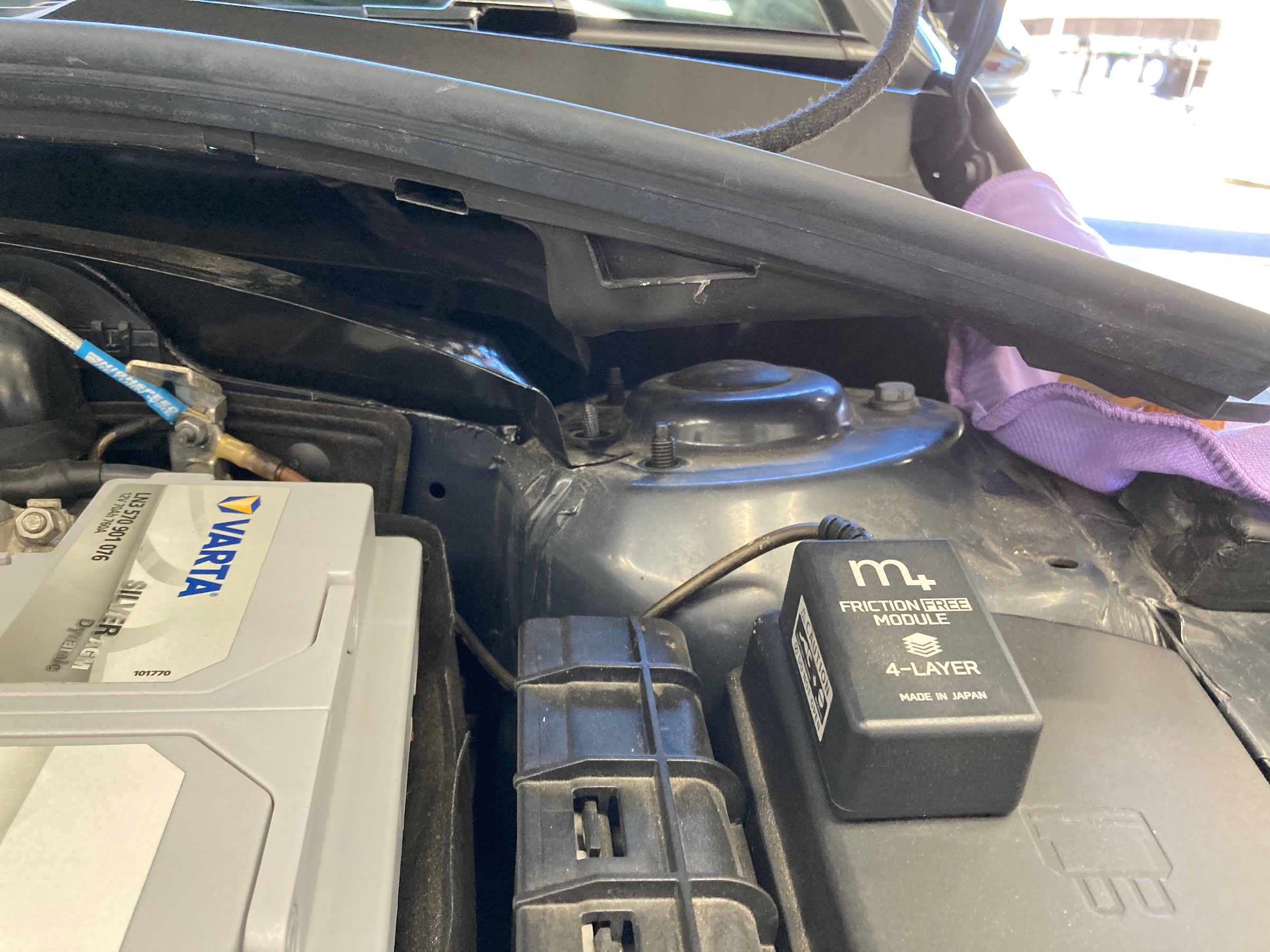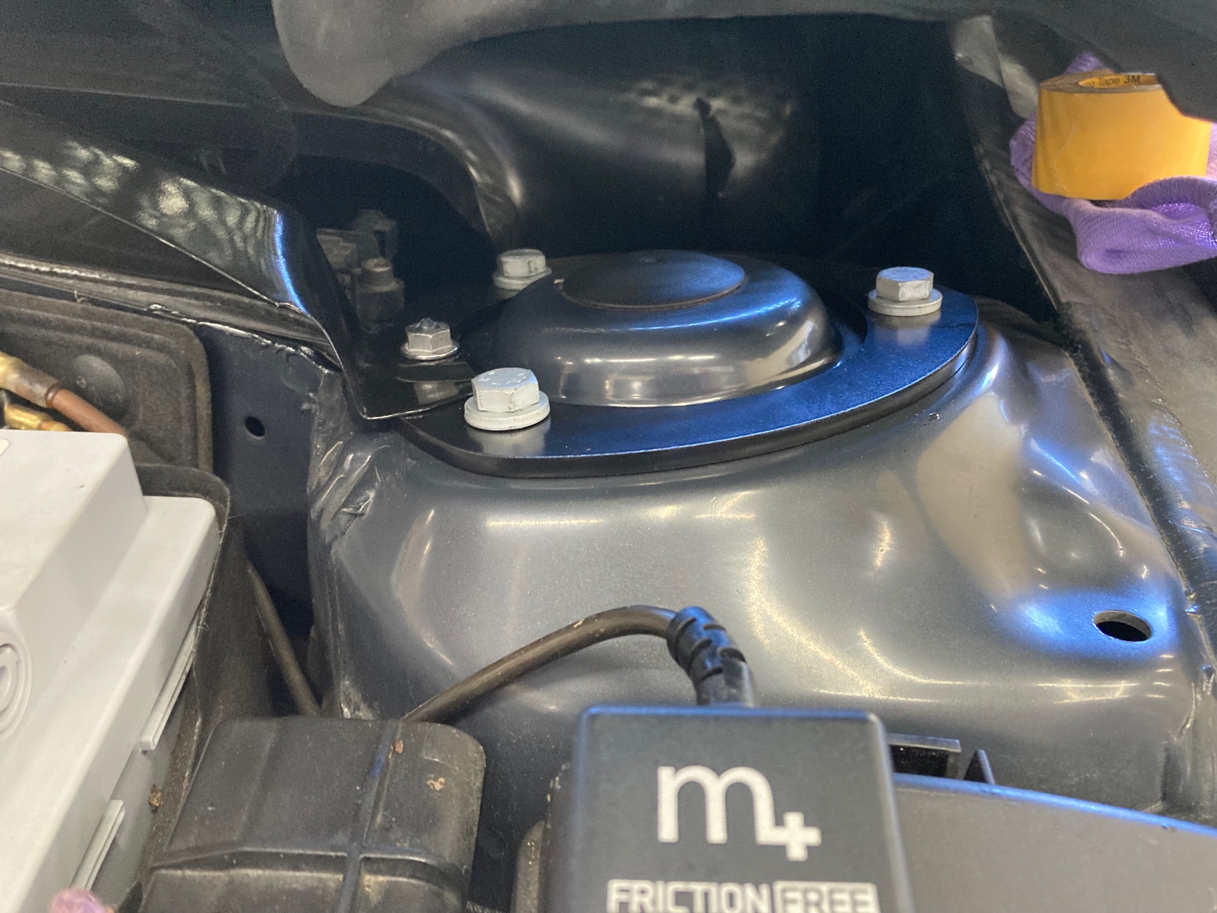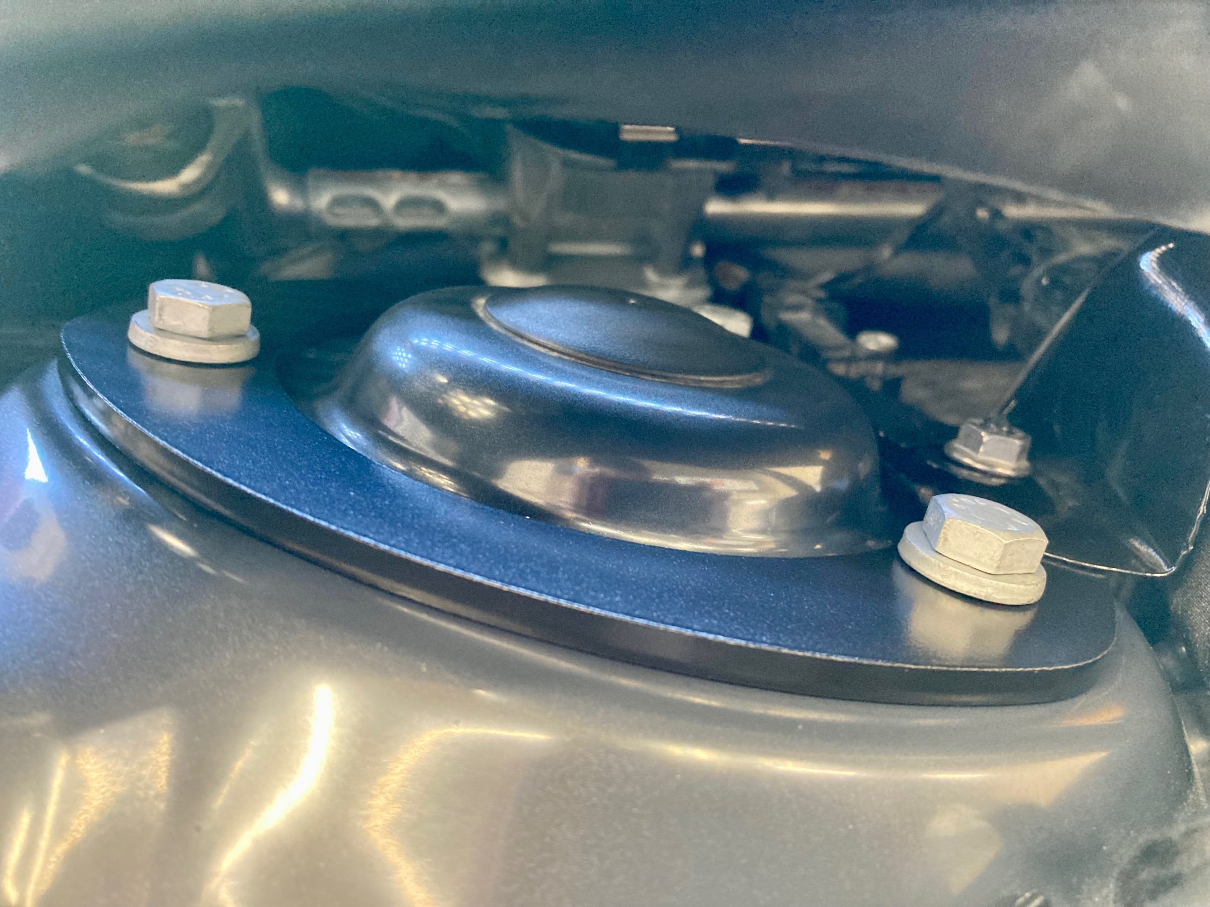 サスペンション上部ストラットタワー部に取り付けますので、
